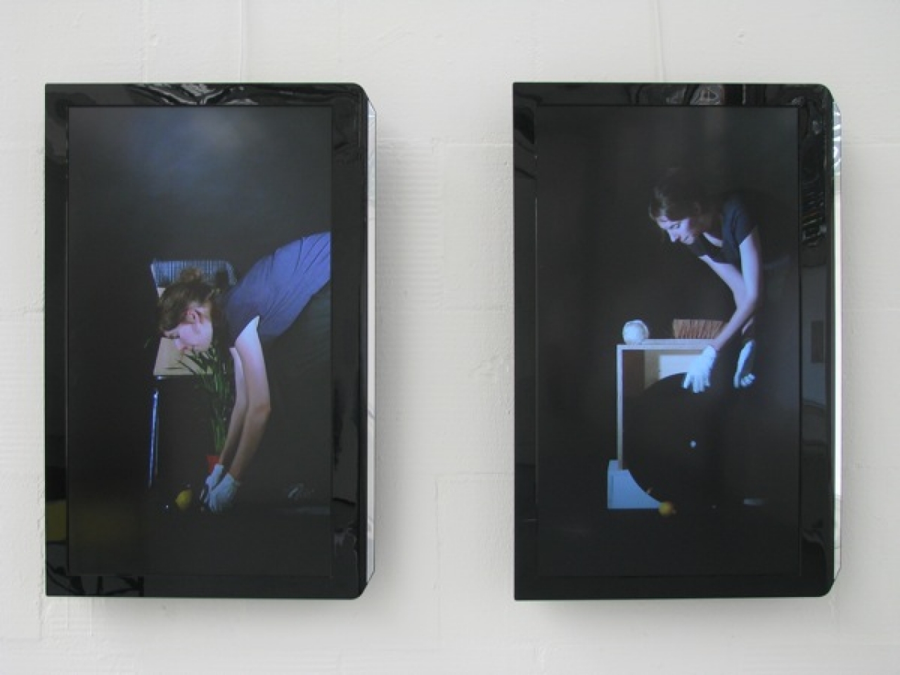 In een installatie zijn een fotowerk, ruimtelijk werk en vier videowerken van Janina Frye te zien. In alle werken staan meubelstukken, objecten en de ordening daarvan centraal. Daarbij is Janina vaak zelf in beeld te zien die de spullen rangschikt naar kleur, grootte, vorm of plaatst in interessante composities. De videowerken zijn divers van karakter: eentje is verhalend en toont Janina op reis met een opklapbaar tafeltje, een andere video is weer meer humoristisch waarbij geprobeerd wordt om een electrische kabel te leren om een deur open en dicht te doen. Maar de sterkste videowerken zijn toch wel die waarbij Janina droog gefilmd is met objecten tegen ofwel een witte of een zwarte achtergrond terwijl zij de spullen in het beeld verplaatst, neerzet of weghaalt.