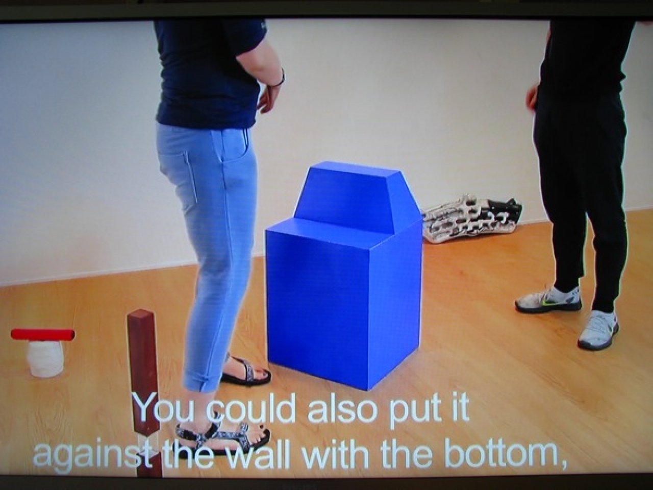 Dennis ter Wal (Fine Arts) installatie met abstracte functieloze objecten en video waarin diverse manieren van inrichten van dezelfde ruimte met dezelfde objecten onderzocht wordt door diverse personen