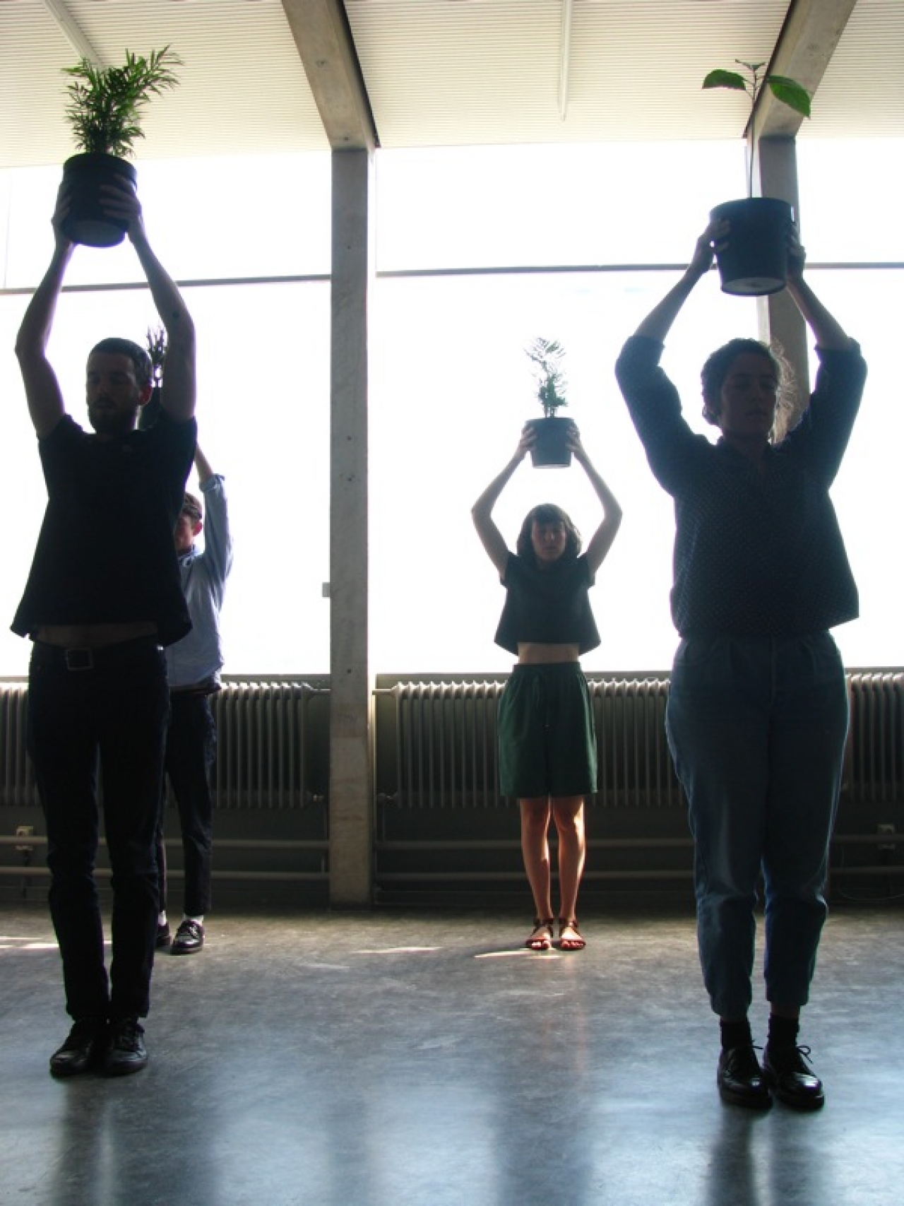 Melissa Tun Tun (Fine Arts) performance met negen personen en negen planten op rustgevende koormuziek