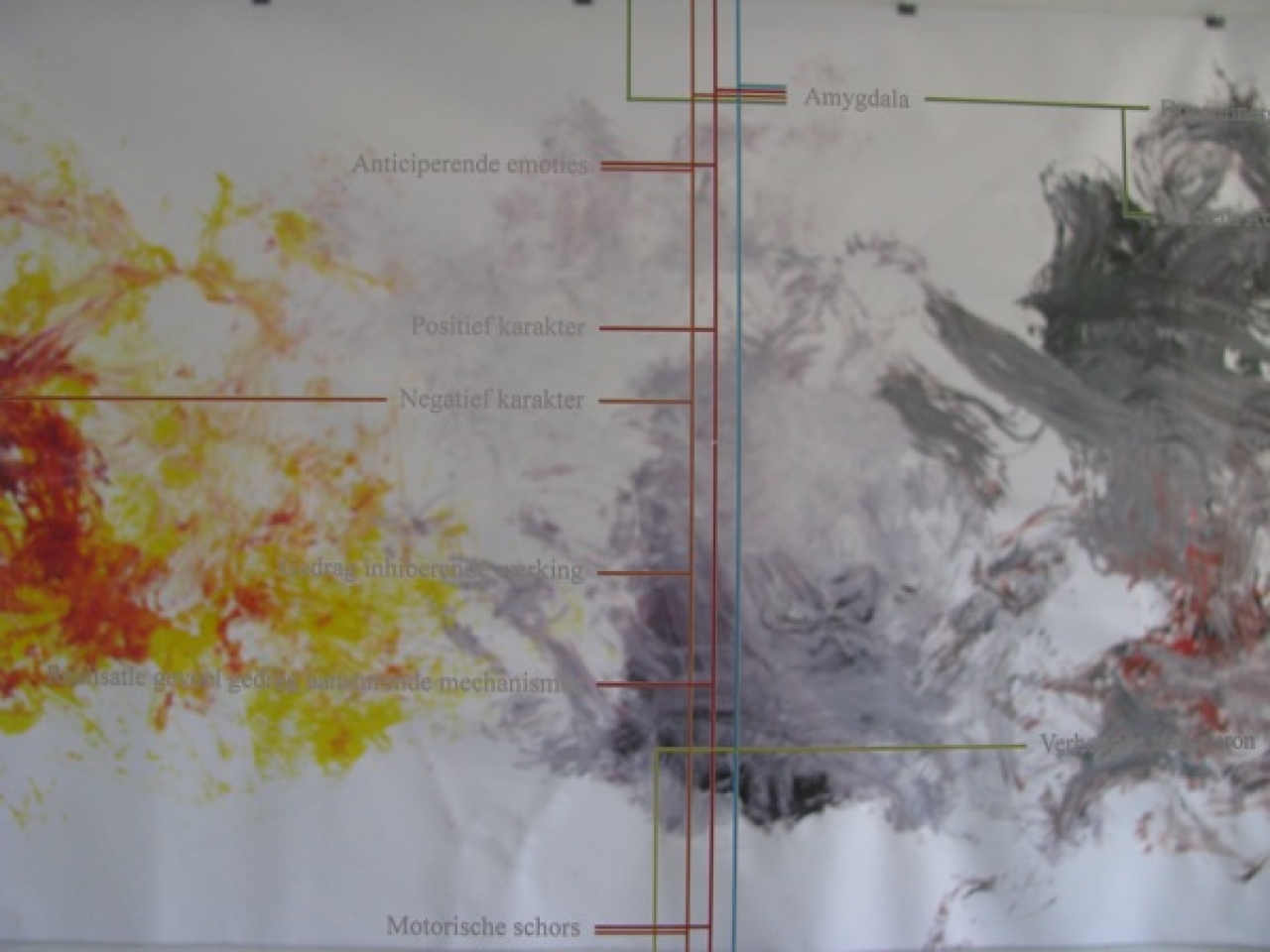 Nonie Buijze studeerde als schilder niet met een mooi afgewerkt schilderij af, maar toonde haar onderzoek naar hoe je met de emotie woede, meer vrije (los van rationaliteit) ongecontroleerde werken kunt maken. Niet zozeer dit werk an sich, maar vooral het onderzoek vond ik interessant.