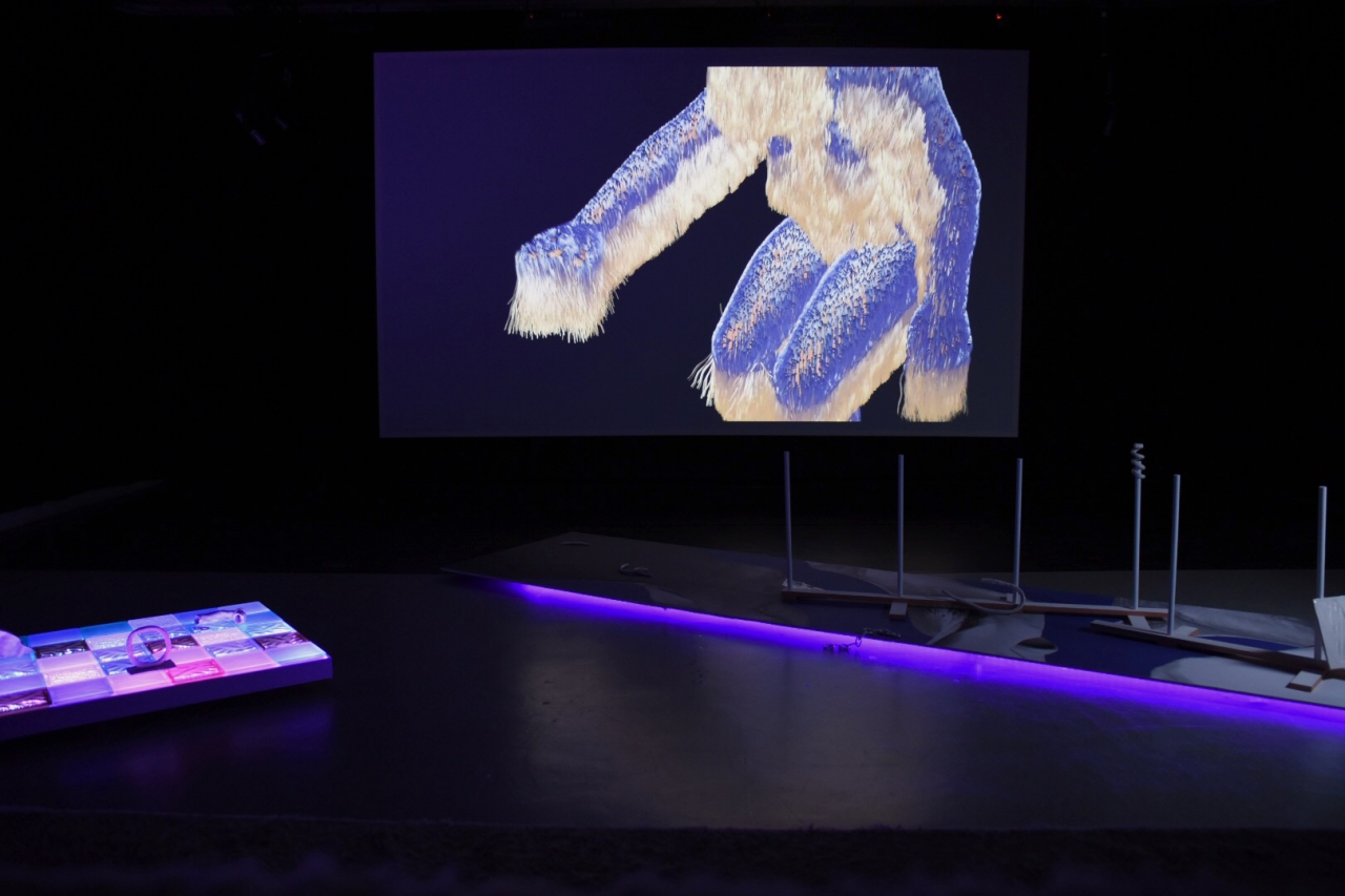 ‘Dit is de publieksfavoriet’, zegt een jongen bijna afkeurend tegen zijn gezelschap bij de video-installatie van Valentina Gal. Ik strijk neer op de zachte bekleding van de banken en laat me meevoeren met de pluizige gedaante op het gigantische scherm. De sensuele bewegingen op het beeld doen denken aan de ontmaagding waarvan iedereen droomt, maar nooit realiteit wordt. Het publiek bij een eindexamenexpositie ziet in één middag de werken van honderden studenten, toch weet Gal maar al te goed hoe zij een plek kan bemachtigen in ieders herinnering, ook bij hen die niet vaak naar een museum gaan. Ik zie hoe het geanimeerde beeld abrupt wordt vervangen voor de close-up van een drinkende hond. Haar werk schreeuwt, trekt de aandacht en valt op, en dat is heerlijk op een expositie met zoveel verschillende kunstwerken.