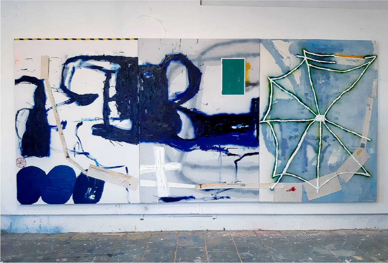 ‘Ik zie mijn schilderijen als poëtische dagboeken, een non-lineaire verzameling van gedachtegangen en ideeën die samenkomen op een doek. De composities bestaan uit objecten die op het eerste gezicht weinig met elkaar te maken hebben en pas in het kader een verhouding met elkaar aangaan. De anonieme uitwisseling met vreemden, inspireert me. Of ik mezelf echt als een schilder zie? Ik maak gebruik van het medium schilderen in bredere zin: ik werk op een canvas met een groot scala aan grotendeels gevonden materialen. Voor mij bestaat schilderen uit meer dan alleen het gebruik verf, kwasten en doek aangezien ik collage, sculptuur en metaal ook onderdeel laat zijn van de schilderkunst.’
