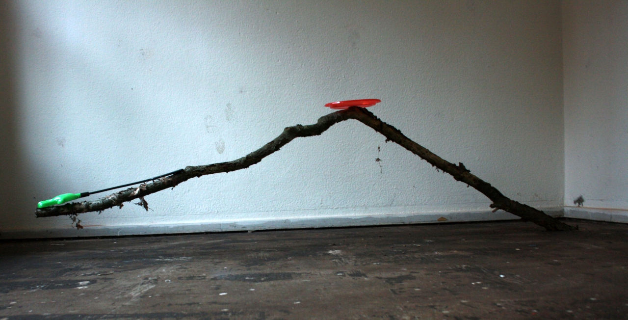 Bij Het Onthaal, de portiersloge aan het begin van het terrein, word ik meteen meegenomen in de droomwereld van Harm Jan Roeles, Lars Reinboud en Gerhard Stephanus de Groot. Een poeltje van koperen muntjes vlak achter de drempel van de voordeur geeft een schitterend welkom, wat al snel onderbroken word door een koord dat als een obstakel over de volledige lengte van een smal gangetje hangt. Een kleine ruimte toont de fantasiebeesten van de Groot, gefabriceerd van papier-maché en nepbond. Ze zijn getuigen van het spel van Roeles tussen een boomtak, een rood plastic bordje en een vliegenmepper met een groene hand als wapen. Kleine kleifiguurtjes, niet veel groter dan een vingertop, duiken op in het hele gebouw: staand, op de thermometer van radiotoren, opgeprikt, met een speldje aan de muur, liggend, als minuscule lijkjes in een hoekje van de vensterbank, een enkeling schaamteloos verpulverd in een schaaltje. Witte paspopbenen rennen rond met een stoel en steken uit de muren. Het gebouw leeft, de bezoeker is een indringer van een drukbevolkte woongroep.