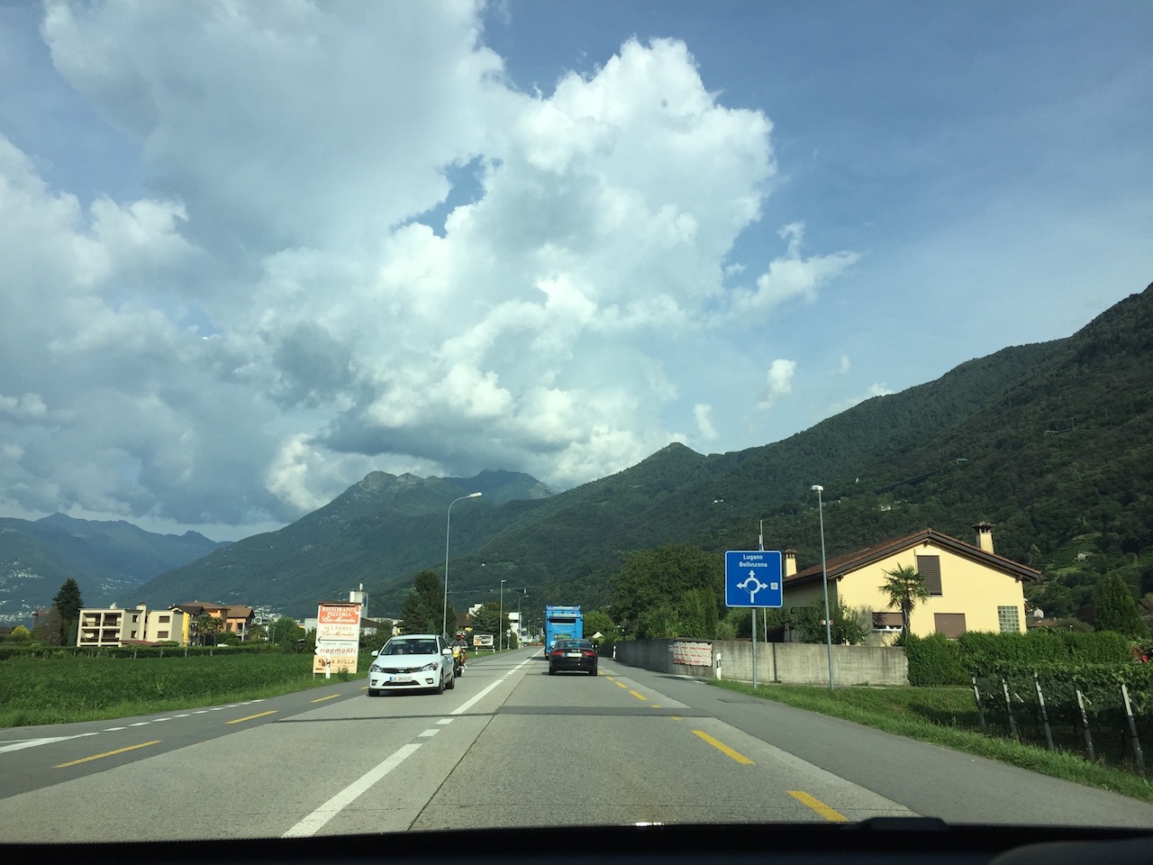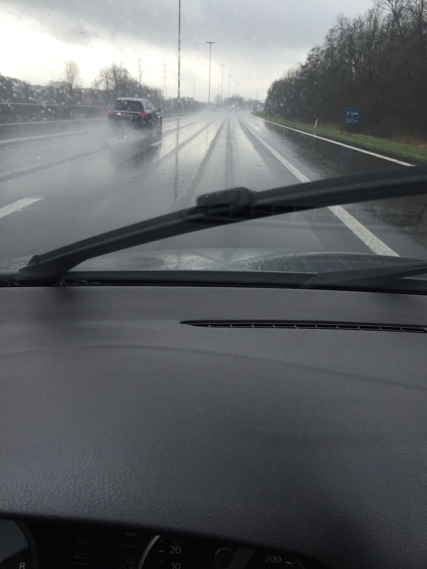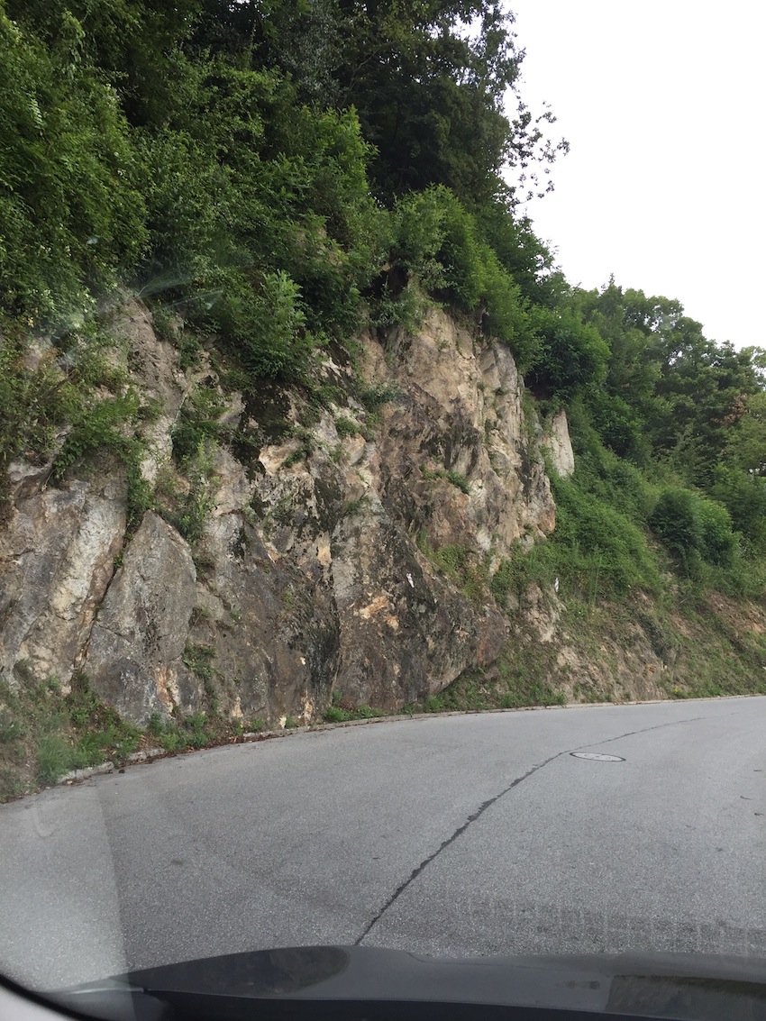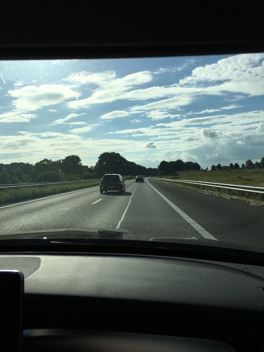 Het is vaak onderweg dat ik zie wat ik zal schilderen. Dan maak ik er een foto van, of ik vraag het Maurice, want meestal zit ik achter het stuur. Zo kan ik het beste de vorm onthouden. Hoe de foto er uitziet doet er verder niet toe. De kleuren komen er vaak pas later bij, soms uit een ander moment. Die schrijf ik dan liever op.