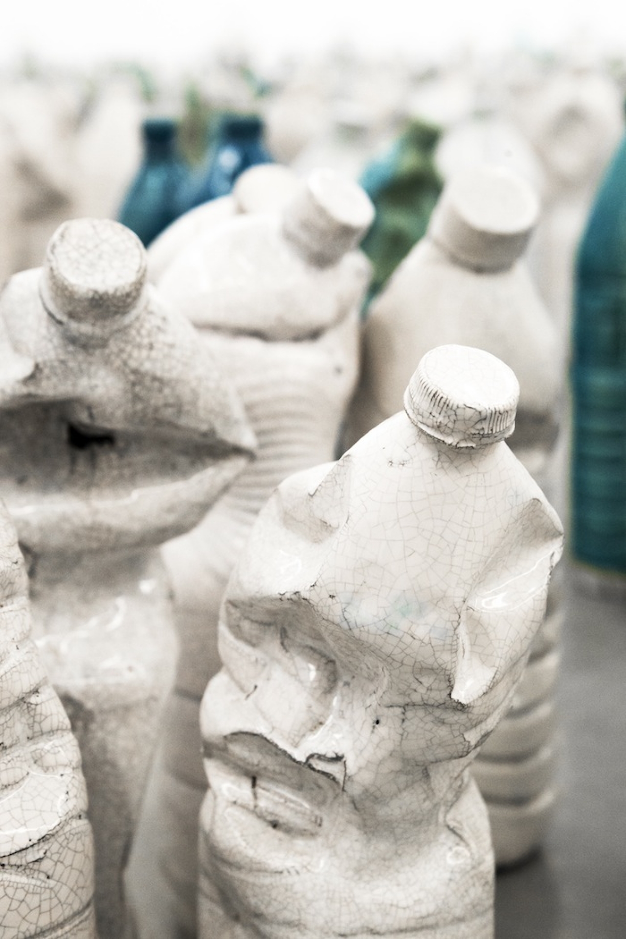 Een plastic fles is op zichzelf geen object waar men waarde aan hecht. De fles wordt leeggedronken en weggegooid. Het toppunt van consumptie. Maar wat als deze fles van textuur verandert? Wat als de fles gemaakt is van een fragiel materiaal als keramiek? In één slag verandert de betekenis en waarde van de fles, hoewel hij zijn vorm en uiterlijk behoudt. Een machinaal vervaardigd product transformeert in een ambachtelijk vervaardigd kunstwerk. Dat is wat Stephen Wilks met zijn Bottle River (Vessels) doet. Het alledaagse object, de massaproductie, wordt omgezet in eigenheid en schoonheid. Van wegwerpobject naar betekenisvolle kunst.
