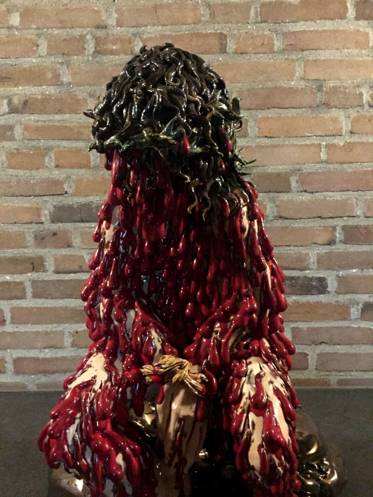 Gastcurator Guus van den Hout kreeg de opdracht om de werken van kunstenaars samen te stellen die ieder geïnspireerd zijn door het geloof. Het zijn geen traditionele drieluiken of conventionele Mariabeelden die het interieur van de kloosters verrijken: de kunst van de biënnale heeft een frisse, hedendaagse gloed. Carolein Smit vult de zijaltaren van de Sint-Paulusabdij met vijf beelden. Eén van deze werken is Man van Smarten, dat het lijden van Jezus op een wel heel expliciete wijze uitdrukt. Op de verbeeldingen van Jezus aan het kruis die we allemaal kennen, worden de wonden van Christus met een bescheiden druppel rood weergegeven. Het lijkt alsof Smit al deze werken is langsgegaan, het achtergehouden bloed heeft opgevangen en vervolgens in haar eigen beeld heeft verstopt: zoveel bloed gutst er uit de poriën van haar lijdende Christus. De kunstenaar gebruikt het Bijbelse verhaal als metafoor voor het hedendaagse individu dat haar pijn en angst niet meer onder ogen durft te komen.