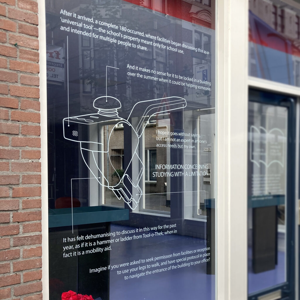 Ik zou zeggen dat CtC in de eerste plaats een reactie is op tekortkomingen. We reageren lokaal (waarmee ik Amsterdam bedoel, de school waar we allemaal zijn afgestudeerd, maar ik heb het ook over andere hedendaagse kunstopleidingen/instellingen in het westen). Dit doen we door ruimte te bieden aan kunstenaars die zich als ziek of gehandicapt identificeren. In een materieel, institutioneel en cultureel landschap dat structureel diep validistisch is, kunnen we CtC als reactie daarop bieden.