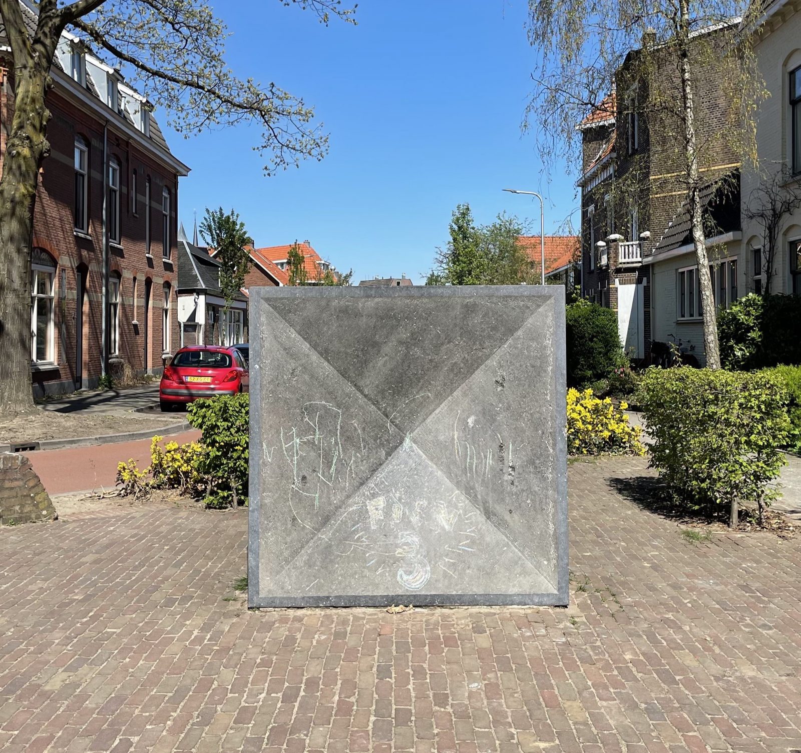 De steen op het Nijmeegse kruispunt zag ik nooit als een kunstwerk, het ging op in de omgeving. Vier jaar nadat de steen geplaatst werd kwam ik drie huizen verderop ter wereld. Ik speelde als kind op en rondom de steen en verhuisde nog voordat ik überhaupt na ging denken over objecten in de openbare ruimte die er anders uitzien dan de rest. Voor mij was dit object zoiets als een bankje of schommel: vormen in mijn omgeving waar ik een stuiterbal tegen aan kon gooien, bovenop kon zitten of hard omheen kon rennen. Ik ontdekte deze vorm pas als kunstwerk toen ik onlangs de kunstenaar sprak en hem online opzocht. Blijkbaar speelde ik als kind al met kunst. Het aanwezige stoepkrijt doet vermoeden dat het publiek er nog lang niet mee is uitgespeeld.