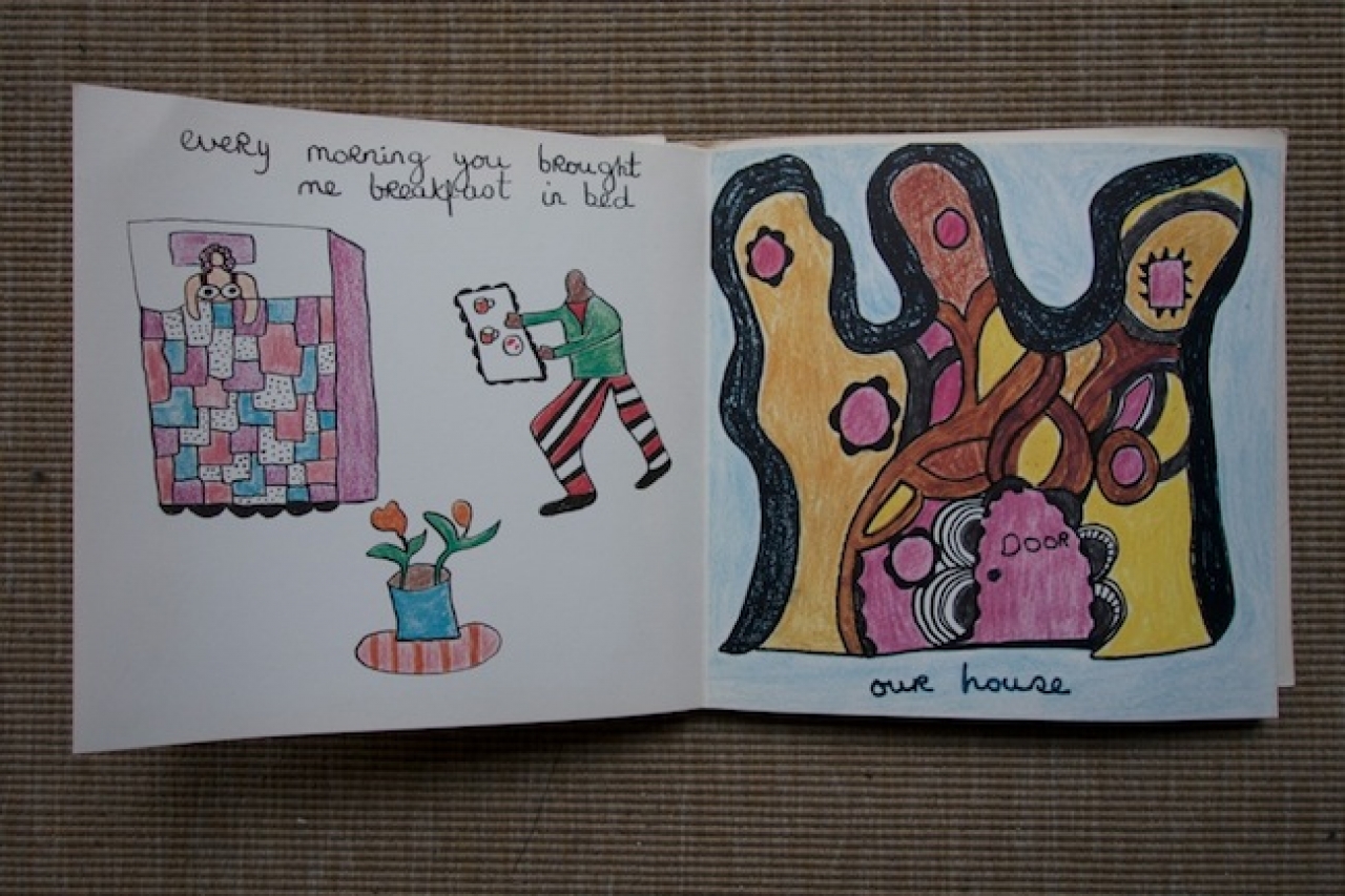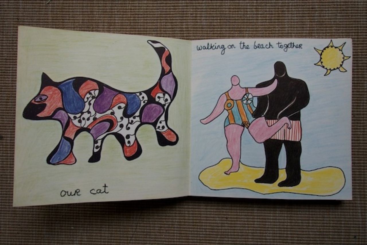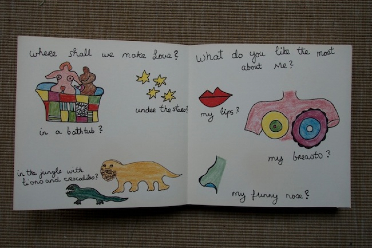 Op het eerste gezicht lijkt het op een kleurboek voor volwassenen, dit boekje van Niki de Saint Phalle. Schattig, maar een beetje kinderlijk. Liefde is natuurlijk ook een beetje kinderlijk met al die vlinders en sterren. Toch is dit boekje meer: het is een verrukkelijk getekend verslag van het begin en einde van een liefde en de vrijheid die de kunstenaar neemt in het tekenen, die we dan mogelijk kinderlijk noemen, is ontwapenend.