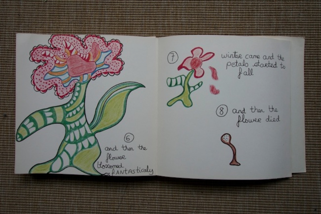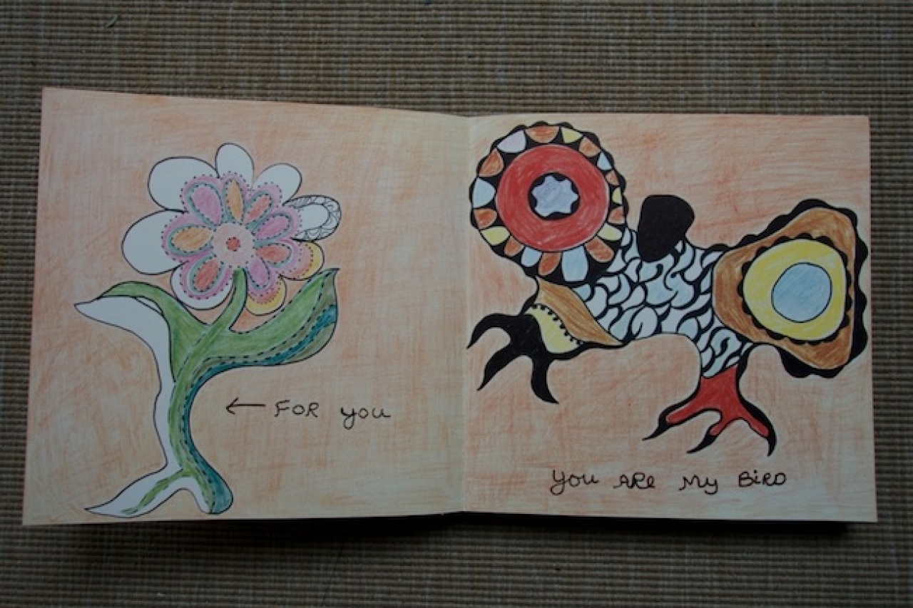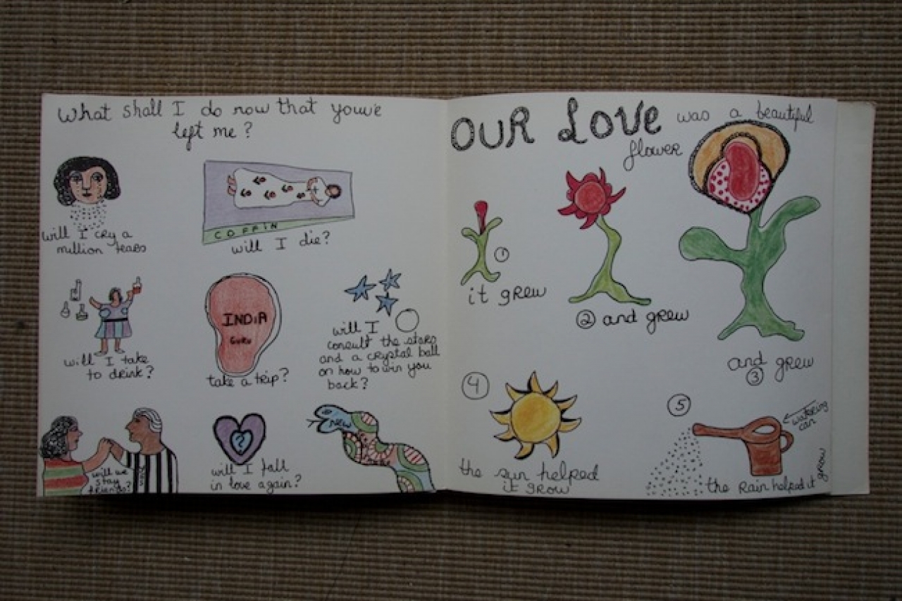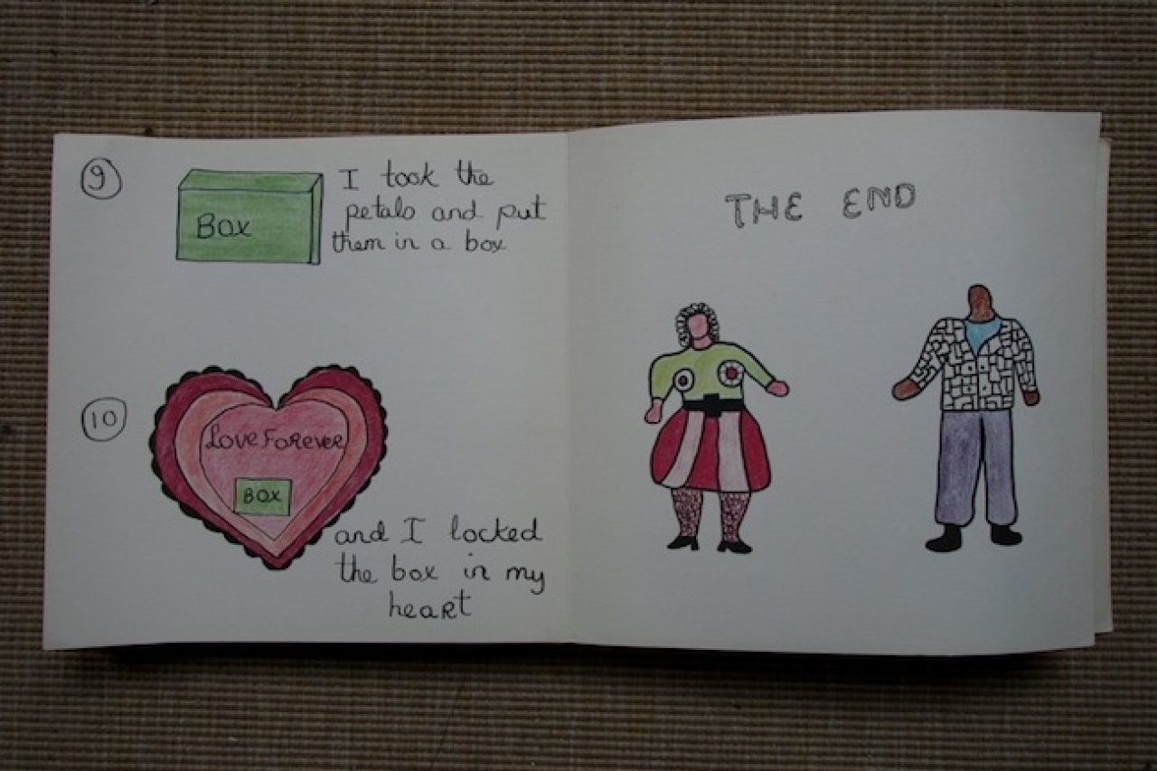 Op het eerste gezicht lijkt het op een kleurboek voor volwassenen, dit boekje van Niki de Saint Phalle. Schattig, maar een beetje kinderlijk. Liefde is natuurlijk ook een beetje kinderlijk met al die vlinders en sterren. Toch is dit boekje meer: het is een verrukkelijk getekend verslag van het begin en einde van een liefde en de vrijheid die de kunstenaar neemt in het tekenen, die we dan mogelijk kinderlijk noemen, is ontwapenend.