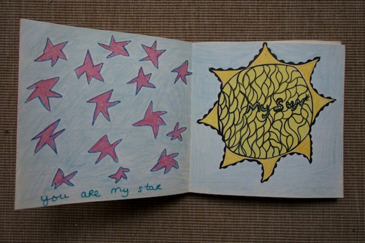 Mijn vriend fluisterde me in het oor dat als ik hem zou verlaten hij naar Pluto zou verhuizen. En dan hoop ik dat hij daar net zo’n mooi boekje schrijft en tekent over een innige liefde. En anders maak ik het. Het is uit maar de liefde was echt en blijft eeuwig in de kosmos hangen.