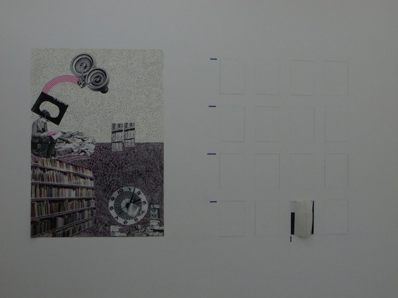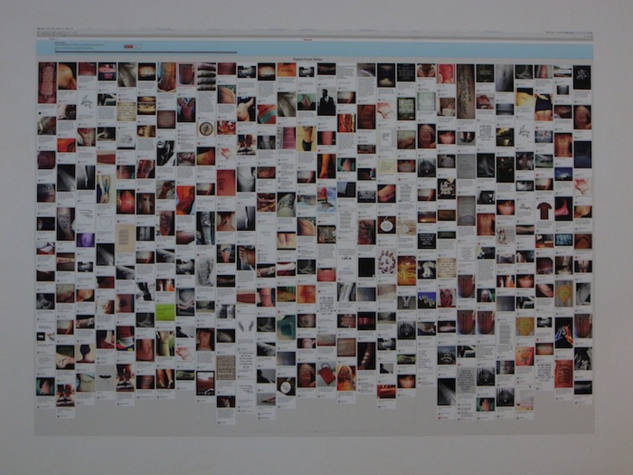 Gemak maakt er een losse tentoonstelling rondom het boek van, met een compilatie van tatoeages van een zin van Robert Frost, een foto van Frost die een boek leest waarvan vooral de handige leesplank over de leuning van je stoel mij een verloren gegaan goed idee lijkt, met sound environments, en schrijvers die voorlezen en tekeningen. De liefde voor het boek laat zich voorlopig nog niet vervangen door een e reader.