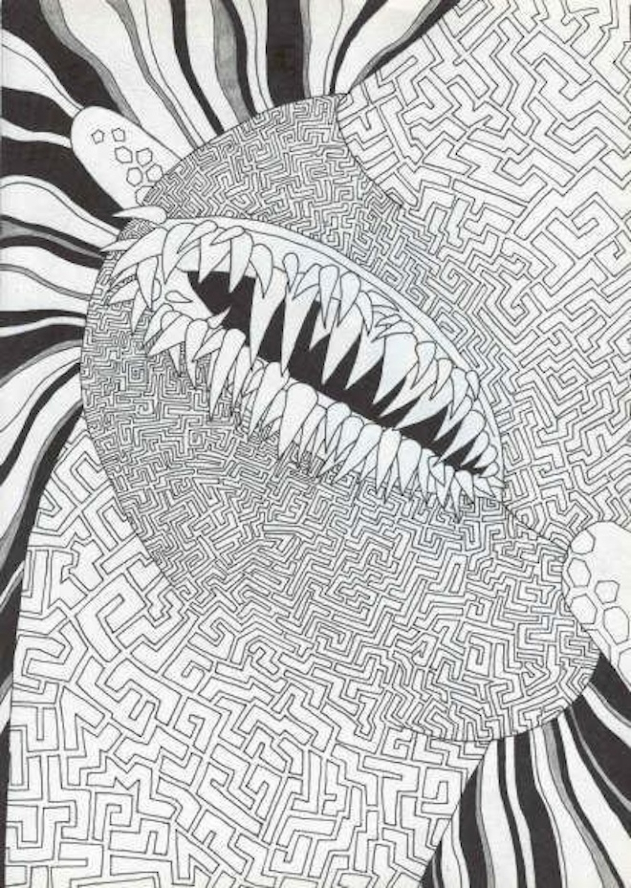 ‘Godpipo is niet geboren tussen glasscherven en het stof van de wereld. Hij is ontstaan, opgestaan nadat niemand de naam wilde claimen.’ Het pseudoniem verwijst naar acteur Wim Meuldijk, beter bekend als Pipo de Clown. Hij is de profeet van kunstenaar Arjan Winkelaar, die met zijn kunst eerder het duister aftast. Godpipo maakt de wereld, de onderliggende laag die men op het eerste gezicht niet ziet. Dat wat verborgen blijft onder de oppervlakte. Collages, tekeningen, maar ook kleine objecten behoren tot zijn oeuvre. Meestal grimmig van aard: labyrinten die geen uitweg lijken te hebben, objecten gemaakt van skeletten en dierenschedels die hij met touw aan elkaar verbindt. Monnikenwerk zou je het ook kunnen noemen. Tekeningen gearceerd met duizenden kriebeltjes die enkel tot stand hebben kunnen komen door urenlange concentratie.