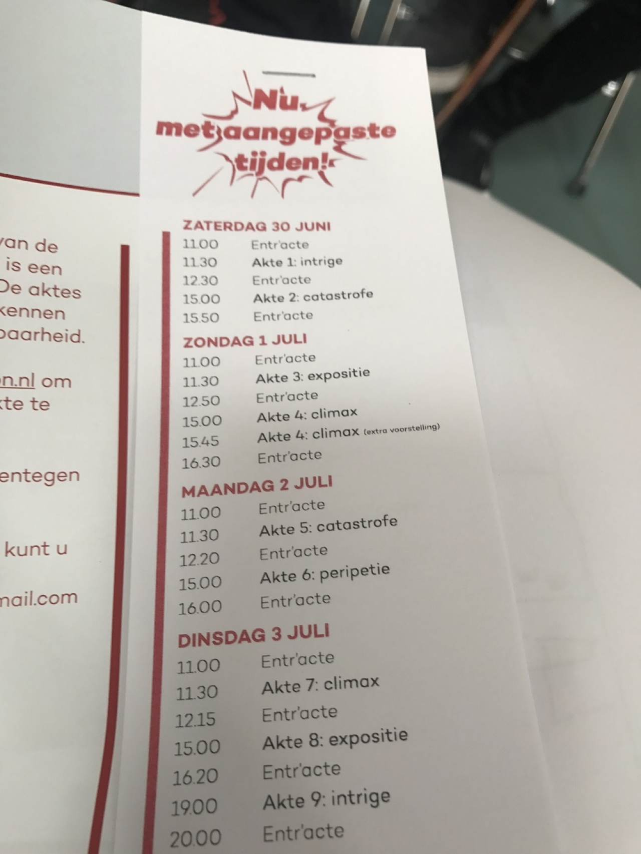 Het schema is strak.