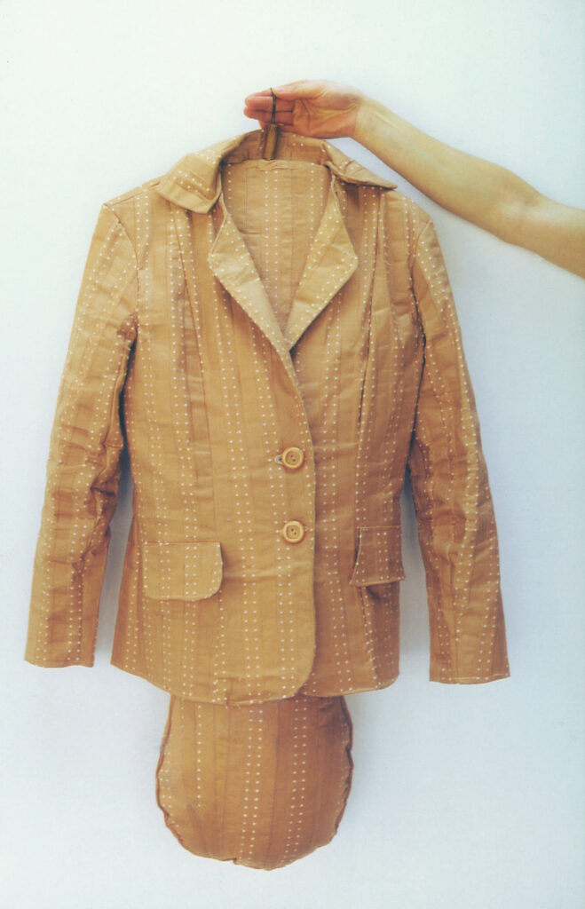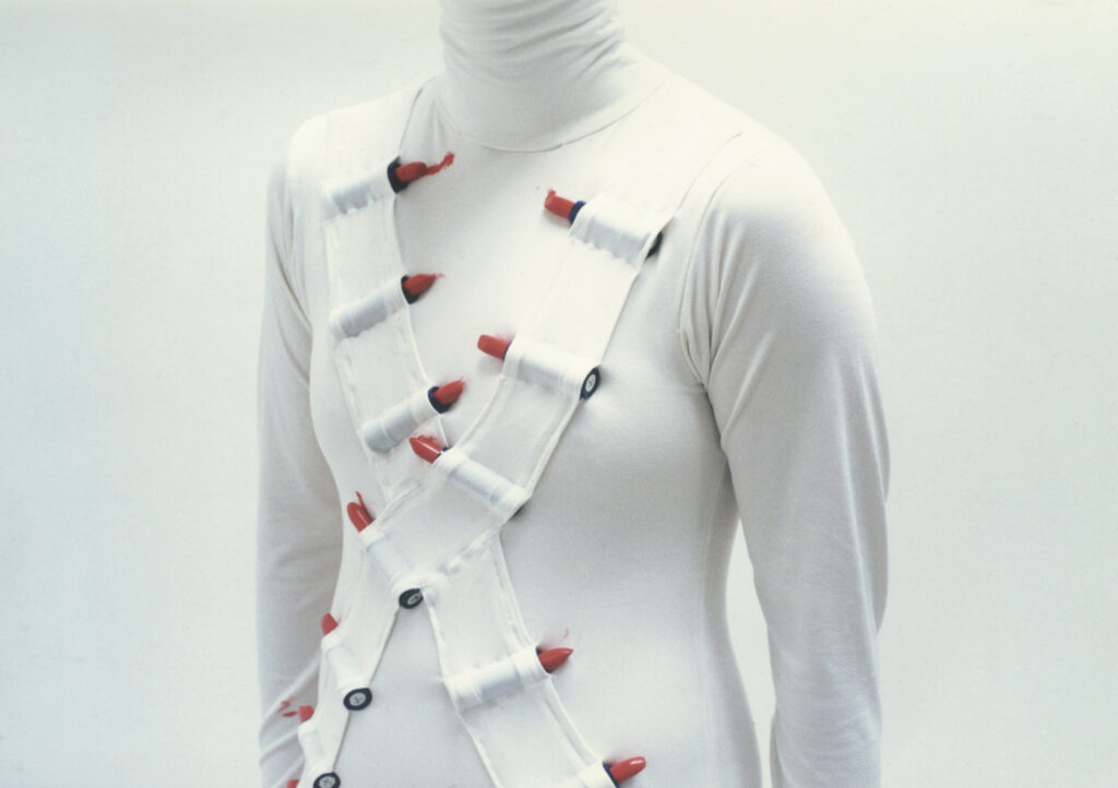 ‘Ik maakte in die tijd video’s en sculpturen die ik aan mijn lichaam bevestigde en fotografeerde, ik was altijd zelf mijn model: mijn eigen lichaam. Het betrof onderzoek naar materiaal uit het dagelijks leven, zoals lippenstiften en pleisters, dat ik omzette naar een andere context zodat het een andere betekenis kreeg.