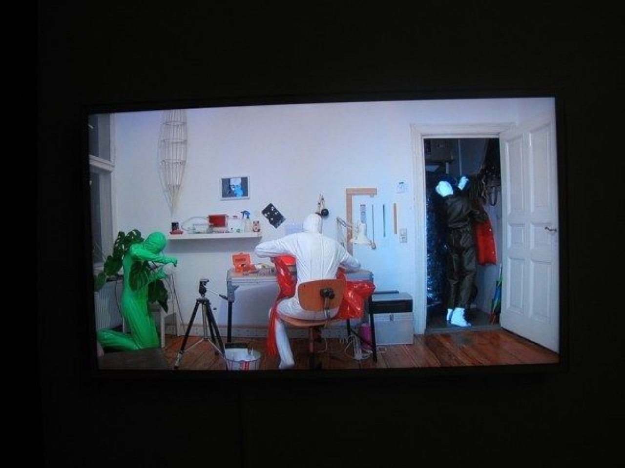 Marc Aschenbrenner’s (1971, Linz,AU) woont en werkt in Berlijn. In zijn videos begint hij met tekeningen, die hij vervolgens transformeert in driedimensionale creaties met materiaal als overlevingsdekens, vuilniszakken en tape.