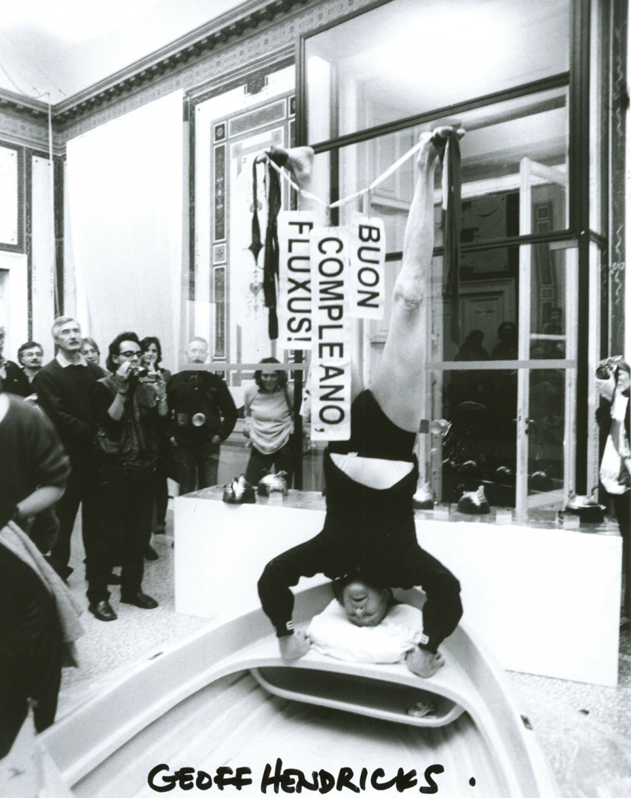 Geoffrey Hendricks was een belangrijk lid van de Fluxusbeweging die ontstaan is in New York en organisator van diverse legendarische Fluxus performances in de jaren 60. Het woord Fluxus komt uit het Latijn en betekent ‘het stromen’, ‘vloeiend’, ‘vloeibaar’, voortdurende verandering suggererend.