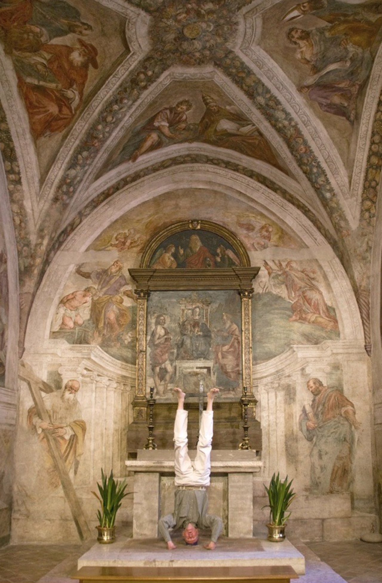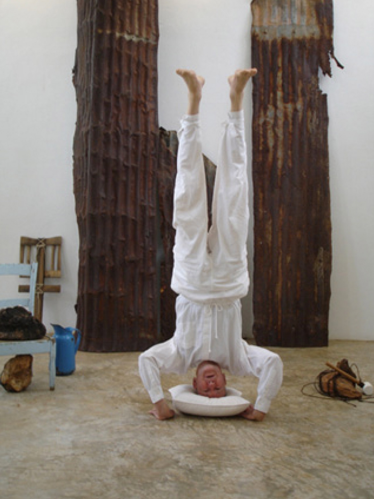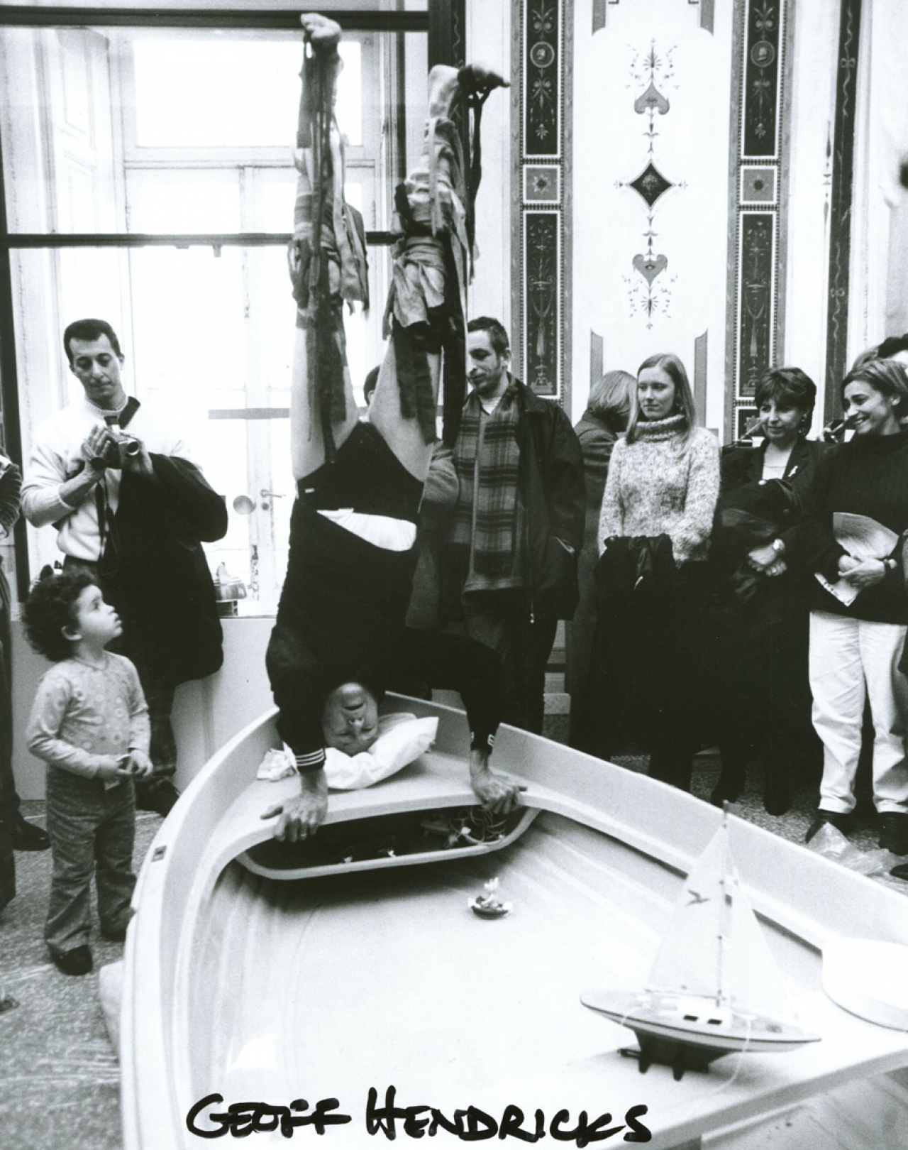 Geoffrey Hendricks maakt sinds de jaren 90 performances met handstanden. ‘headstands for peace’ noemt hij ze. Een meditatieve performances waar hij in openbare ruimtes in verschillende landen en culturen handstanden maakt. Een universele handeling die iedereen op de wereld herkent en die alleen gemaakt kan worden wanneer het lichaam in balans is. Deze performances leveren prachtige beelden op van een kunstenaar die nog steeds de opvattingen uit de Fluxusbeweging als uitgangspunt neemt en beoogt dat het dagelijkse leven en de kunst samen moeten gaan.