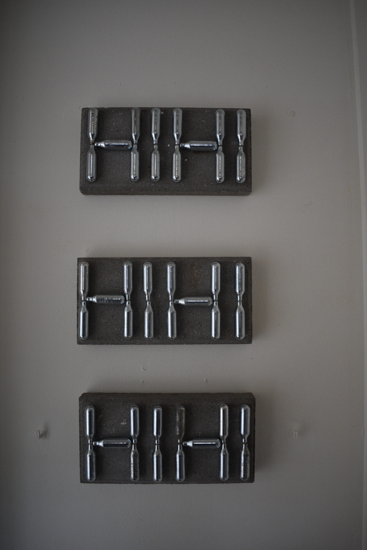 “Mensen zullen bij mijn werk niet snel denken: aha dat gaat over racisme of een groot politiek thema, maar er zit vaak wel een laag in. Bijvoorbeeld mijn werk over de lachgaspatronen. Ik vertel hier over vervuiling en ongelukken die gebeuren. Ik verzamel patronen en plak ze op stenen met de kreet HiHi als een soort van klein meisje dat grote jongens uitlacht. Indirect geef ik kritiek op de mensen die lachgas gebruiken. Maar mijn werk wordt nooit belerend. Ik dacht niet van: Ik ga nu drugs en vervuiling aanpakken en daarom ga ik met lachgaspatronen werken.