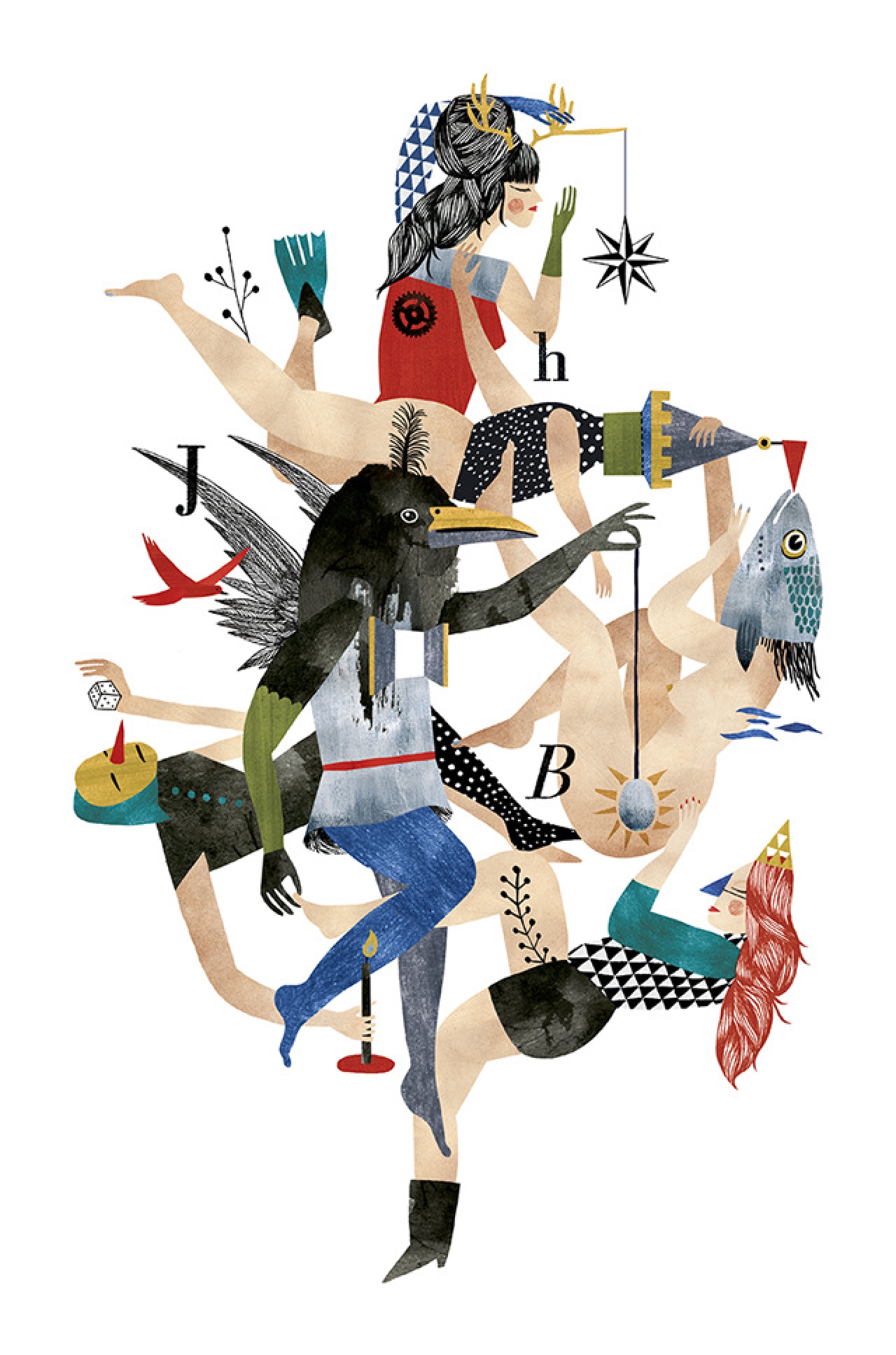 Aanleiding voor dit project is het Jeroen Bosch jaar dat op stapel staat en dat onder de titel JB500 in 2016 de 500ste sterfdag van deze kunstenaar herdenkt. Als geen ander wist Jeroen Bosch uitdrukking te geven aan de bekoringen en verzoekingen van het aardse leven verbeeld door de hemelse en helse verrukkingen. Hij schetste daarmee een metaforisch wereldbeeld waar we ons voornamelijk dank zij hem nu een voorstelling van kunnen maken dat tegelijkertijd verontrustend en verleidelijk is. De uiterste detaillering van een aan pure verbeelding ontsproten fantasiewereld dat droom en nachtmerrie ineen is, heeft de beschouwer ervan van begin af gefascineerd. Zijn beeldtaal is niet zozeer uitzonderlijk, want er waren tal van andere kunstenaars die soortgelijke hybride fantasiewezens schilderden, als wel bandeloos, want er is geen ander die in een almaar uitdijende detaillering zo’n wezenlijk schilderkunstig universum aan onvoorstelbare taferelen in contrast met het alledaagse en platvloerse heeft geschapen als hij. Jeroen Bosch is een kunstenaar die je kunt bewonderen en verguizen, maar aan wie je je niet kunt meten. Je kunt je nooit op een voet van gelijkwaardigheid met hem verhouden. Hij heeft schilderijen tot stand gebracht die blijk geven van een universele menselijkheid aan kracht en zwakte die elkaar als communicerende vaten beïnvloeden. Ondanks beestachtige trivialiteiten gaat er van zijn werk een uiterste vergeestelijking uit. Die aspecten van zijn kunstenaarschap hebben de deelnemers aan ‘Bosch Grafisch Souvenir’ op allerlei manieren beïnvloed. We zien het woud dat spreekt en het veld dat ziet, de wereld onder een glazen stolp, doormidden gesneden, het hemelgewelf gehalveerd, brandende torens en monumenten, eindeloze zinderende kleurstalen, dierenhuiden, vogels, vissen, doedelzakken, trechters, een vleesfontein, rondzwervende vingers, vage vlekjes, muiltjes, schoenen, klompen, schone zielen, wakken en lepels in etsen, zeefdrukken, lino’s, houtsneden, stempels, drukplaten, foto’s, films en prints. De prenten die de kunstenaars hebben gemaakt, krijgen daarnaast een equivalent in souvenirs als een kalender, sleutelhanger, reislampje, shawl, vazen, broches, speldjes, hangers, kruidenpotjes, zaadjes en tasjes, presse-papiers, een kwartetspel , koelkastklevers en plaktatoeages, naast grafische afgeleiden van de prenten zelf die als miniaturen de functies van gedenkteken of herinneringsbeeld vervullen