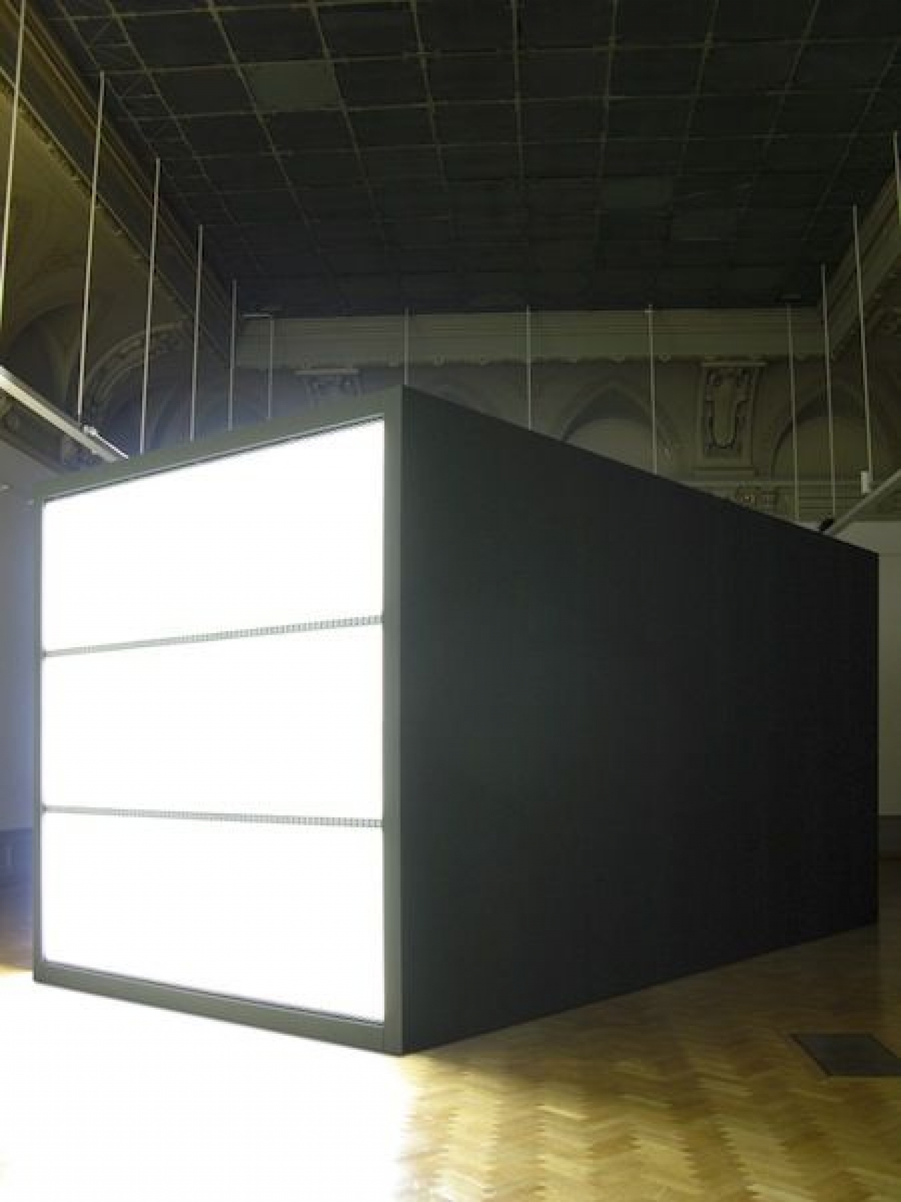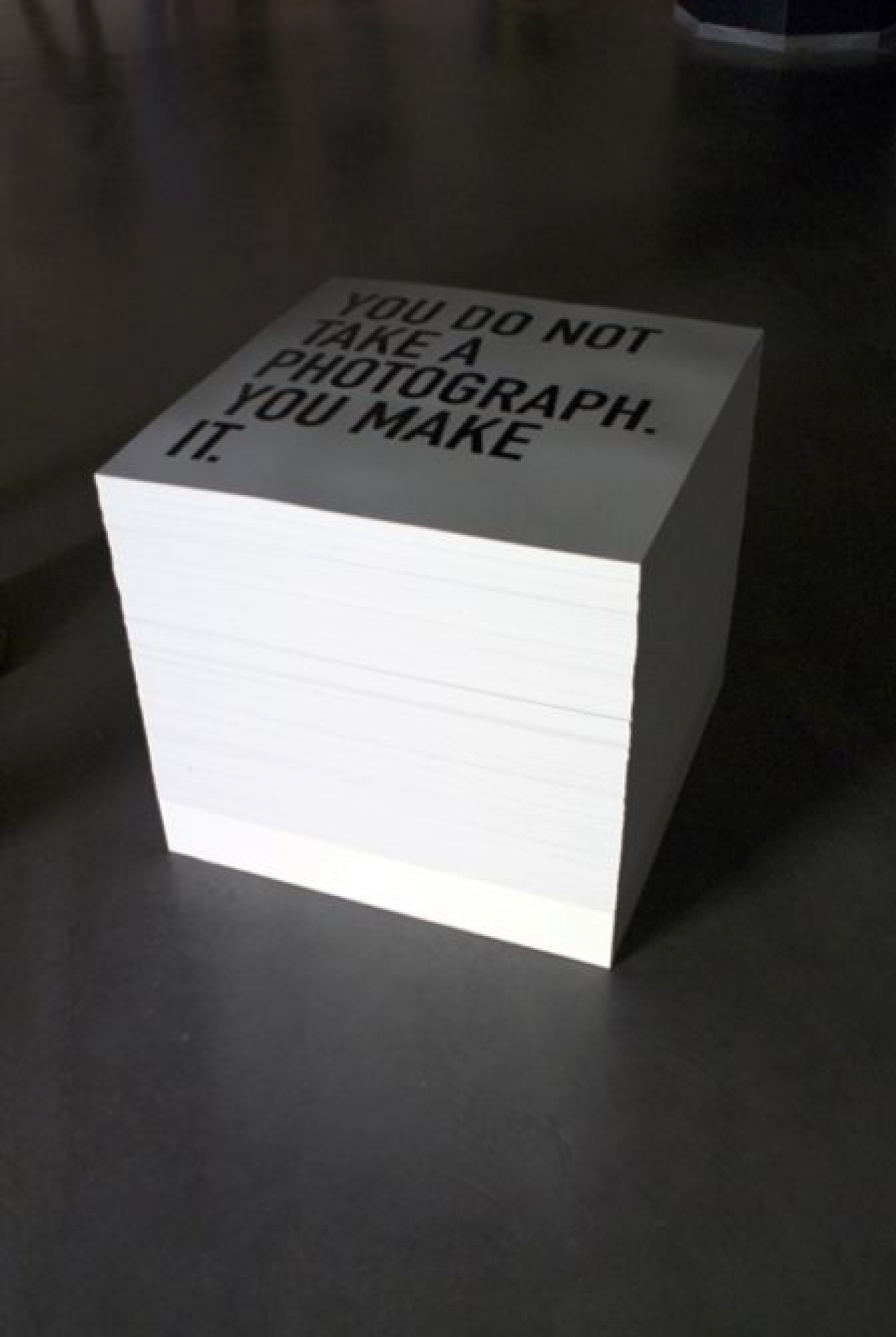 Alfredo Jaar: ‘Wat mij betreft draait alles in kunst om een pure vorm van communicatie. Ik doe een poging om dialogen helder te maken door middel van deze installatie. Als je naar de definitie van communicatie kijkt, betekent dit niet enkel het versturen van een boodschap. Vaak vindt communicatie plaats in de vorm van een vraag en een antwoord. Sterker nog, als er geen antwoorden zouden zijn, dan bestaat er geen communicatie. Wanneer ik een kunstwerk maak, ontwikkel ik een stappenplan waar ik vragen aan mezelf stel en deze probeer te beantwoorden om zo mijn uiteindelijke boodschap te verduidelijken. Ik creëer entry points, die ervoor moeten zorgen dat toeschouwers een makkelijk instappunt hebben bij mijn werk. Als je nergens als toeschouwer weet waar je moet beginnen, dan communiceert je werk dus slecht en krijgt een sceptische toeschouwer geen nekharen overeind. Daarom creëer ik binnen de communicatie een opening voor kinderen, voor ‘normale’ mensen, voor intellectuelen etc. Deze verschillende mensen kijken allemaal anders naar een werk. Sommigen zien de oppervlakte, anderen een diepere boodschap, weer iemand anders kijkt naar vorm en techniek, een kind heeft wellicht een primaire reactie.’