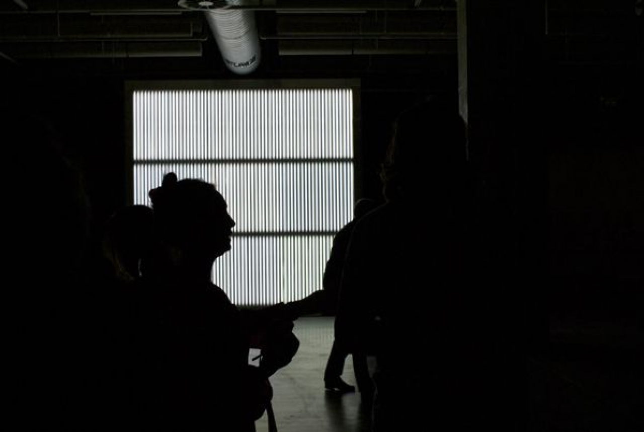 Tijdens het wachten in de rij voor de donkere kubus van toonaangevend Chileense kunstenaar Alfredo Jaar, The Sound of Silence, in het Fotomuseum van Rotterdam knoop ik zacht fluisterend een praatje aan met de man naast mij. Hij fotografeert Rotterdamse scheepswerven. Door een tijd in de lange sliert met nieuwsgierige bezoekers te moeten staan, eigenlijk in stilte, bouwt er een zekere spanning op tot het betreden van de afgesloten ruimte. ‘Wat verwacht je van dit kunstwerk?’ fluister ik de man toe. ‘Het schijnt dat we in ongeveer 12 minuten naar slechts één afbeelding gaan kijken.’ vertelt hij mij. ‘Daar hou ik eigenlijk doorgaans niet zo van. Misschien loop ik wel eerder weg.’ De nieuwsgierigheid groeit. Voor mij staat Erik Kessels die ik tegen zijn vriend hoor zeggen dat langdurig kijken naar slechts één enkel beeld het kijken verscherpt. Hij vindt het een goede zaak vang ik op, al waren deze woorden niet direct naar mij gericht. Twaalf mensen mogen er per keer naar binnen. De wachtenden in de rij rekenen hoelang het nog duurt. Soms ontsnapt er een kleine flits uit de donkere afgesloten kubus. En na acht minuten stroomt de kubus leeg. Een kleine stoet van mensen die in complete stilte verdwaast terug keert in de grote museumzaal. Wat gebeurt er met hen in die enkele minuten? Opgetogen treedt men binnen, beduusd naar buiten. Dan ben ik aan de beurt…