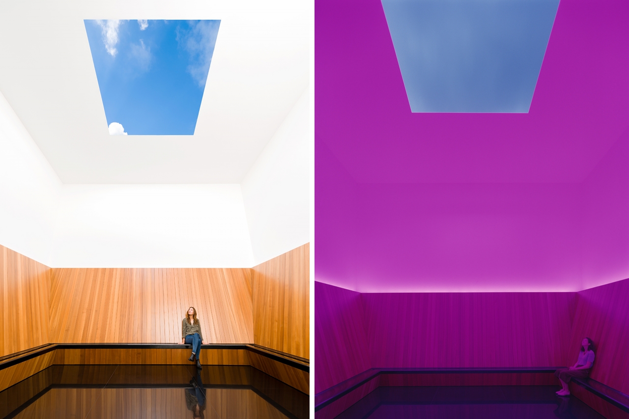 Onze grootste (letterlijk) associatie met blauw is de hemel. Een immens groot canvas dat ons steeds weer een andere tint blauw toont. De kleur blauw speelt automatisch een belangrijke rol in kunstwerken waarin de hemel is afgebeeld. Skyspace van James Turell in Voorlinden. Door een gat in het plafond is er een uitsnede van de hemel te zien. De kleur van de verre leegte verandert. Het kan alle tinten blauw aannemen, net als alle tonen grijs. Puur grijs is de uitsnede van de hemel trouwens moeilijk te noemen. Buiten in de tuin van Voorlinden dacht ik dit keer echt dat ik een grauwe grijze dag te pakken had, binnen bleek de hemel in Turrells uitsnede toch meer blauw dan grijs. Ook de verlichting in de ruimte waar ik zit, doet mee in het spel van de kleuren. Hoe meer de kleur van het hemeldek naar grijs neigt, hoe meer kleurvariatie ik in het werk ontwaar. De verte neigt naar lila, is momenten zelfs groengrijs te noemen. Een groengrijze hemel. Ook moet ik denken aan Ascent van Fiona Tan, haar visuele essay over de berg Fuji. In deze beeldverzameling kleurt de hemel die de berg omringt alle tinten maar vooral veel schakeringen van blauw of grijs. Van licht tot donker, hel tot vaal. De hemel is ons dagelijks canvas van de kleuren blauw en grijs.