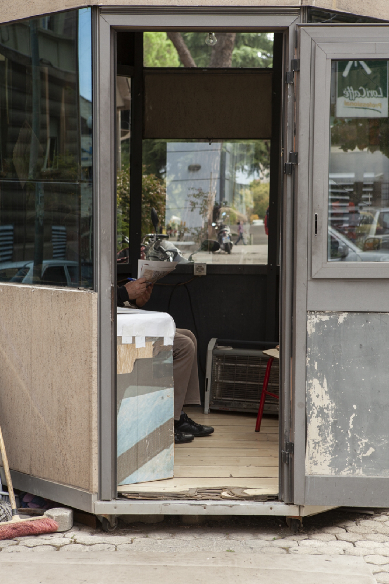 Wie nu door de stad wandelt, ziet wat Mariet Dingemans heeft gefotografeerd. Noem het de fragmentatie van de beveiliging van een heel land. “Of noem het de individualisering van die belegeringscultuur”, oppert dichter Arian Leka. “Een obsessie getransformeerd met de komst van de vrije markt.” Quarantaine voor de veiligheid, niet van een natie, maar van een werkgever.