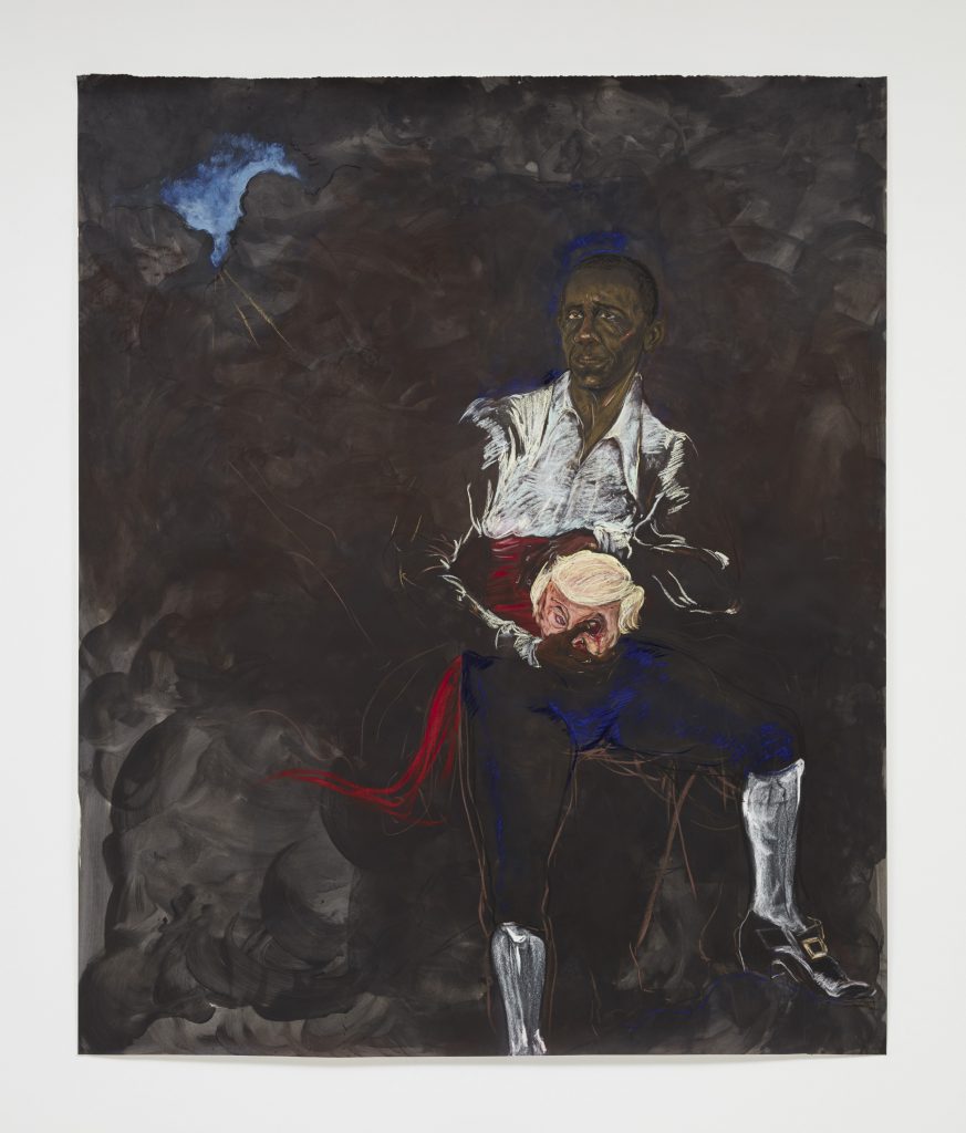 Eén van de grote hoogtepunten van de tentoonstelling is het schilderij van Obama als Othello. Zijn figuur is groots en uitdagend. Zijn opmaak die van een held. Maar het is ook een prachtige metafoor voor Walkers werk en de tentoonstelling in het algemeen. Obama is de man die werd binnengehaald als de redder van het volk, iemand die zijn afkomst wist te ontstijgen. Uiteindelijk bewees hij enkel de harde realiteit: één man kan geen bergen kan verzetten en er zal waarschijnlijk nooit een tegengif gevonden worden voor haat, angst en woede.