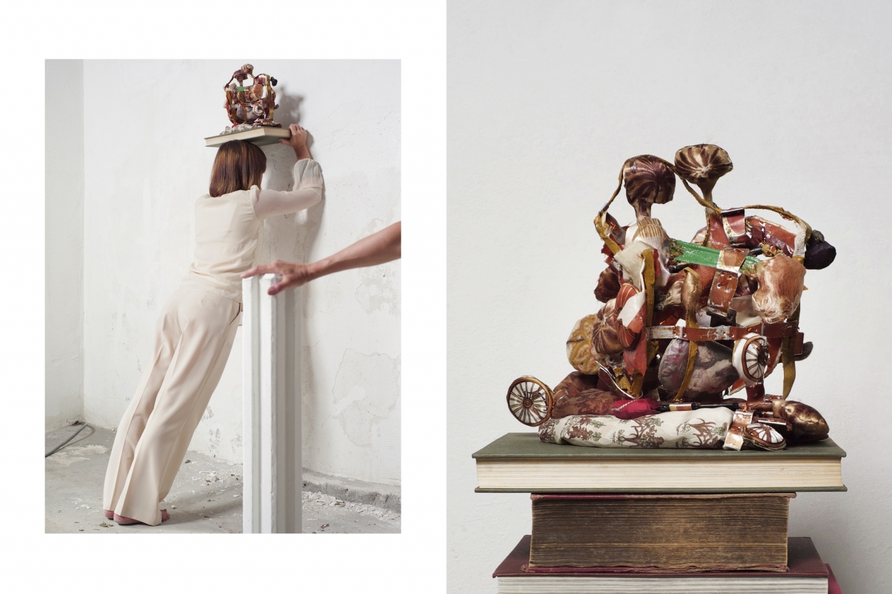 Uiteindelijk mondt haar presentatie uit in een tentoonstelling van haar sculpturen in een specifieke ruimte. Grotere en kleinere sculpturen en werken aan de wanden, onder stolpen en vrij in de ruimte verbeelden op een indringende manier dat Ans Verdijk zelf de sokkel voor haar werk is. In een aantal fotoboeken bij de tentoonstelling laat ze dat nog duidelijker zien. Bij al haar werk kijk je ergens naar binnen, haar beelden zijn vrijwel allemaal opengewerkt, opengevouwen, alsof een chirurg je in het binnenste van de mens laat kijken. De barokke uitbundigheid ervan is meeslepend, maar er eenmaal in gezogen sta je regelmatig vreemd te kijken. Midden in de ruimte waar ze haar werk in samenhangt toont, staat een zwarte mobiele sculptuur die is uitgedost met een puntmuts. Deze staande eenmanskoets kan alleen worden voortbewogen als je er zelf in plaats neemt. Als je dat beseft, dringt het tot je door dat het een leprozenkar is, een wagentje waar de melaatse mens zich in voortbeweegt om de angst voor besmetting van zijn omgeving te bezweren. Het is meteen ook een kijk op het kunstenaarschap. Hij kan de pest krijgen. Maar hoe geïsoleerd de kunstenaar ook is, hij blijft de maatschappij infecteren. De praktijk van Ans Verdijk toont aan dat haar infecties de broodnodige injecties zijn. We worden er niet ziek van, maar beter.