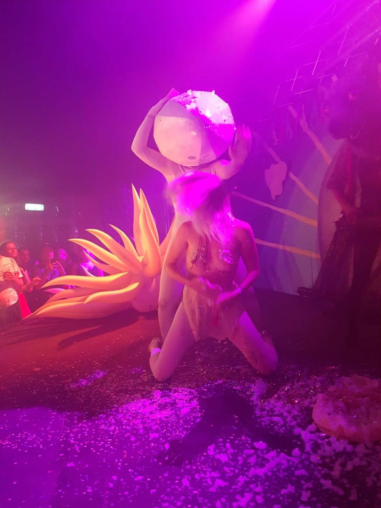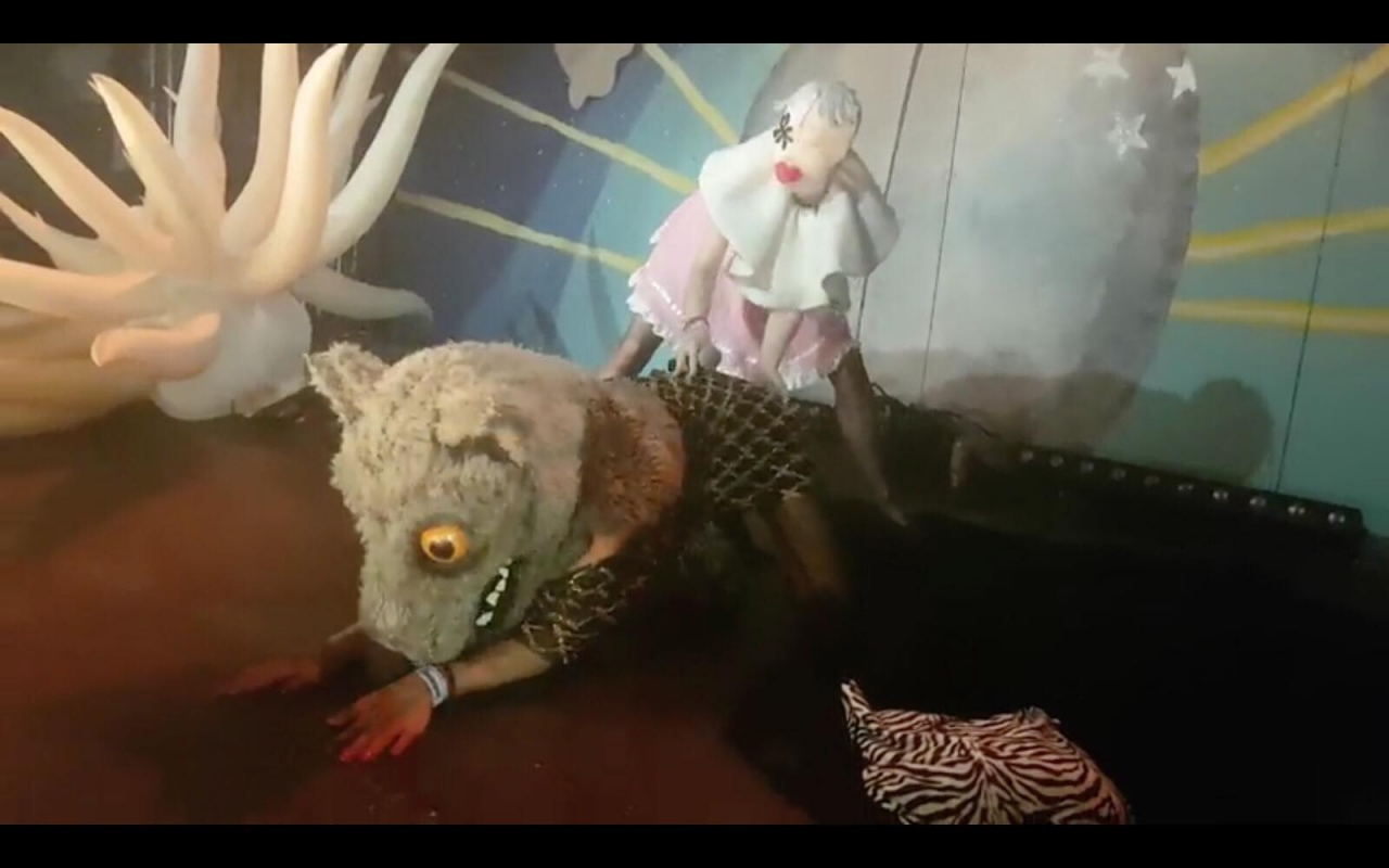 Nest Den Haag programmeert drie nachten lang een video op het Lowlands terrein. Artistiek directeur Heske ten Cate heeft samen met kunstenaar Valentina Gal tientallen video’s van jonge kunstenaars en beroemde en beruchte YouTube fragmenten gecombineerd en gemonteerd tot een vijf uur durende loop over het ontstaan van ons mensen. Het scheppingsverhaal door middel van het internet. Het gaat niet over Adam en Eva, de oerknal of God die zag dat het goed was, in deze montage zijn het de geanimeerde dikke dansende man van Daan Couzijn, de 90- jarigen die door Melanie Bonajo in contact komen met nieuwe gadgets en de protagonist van Peter van der Es die maar blijft huilen, die iets zeggen over wat er van ons mensen geworden is. Door daarnaast YouTube beelden te laten zien van een baby die veel te lang en te hard op de vinger van zijn broertje bijt, een mensenmenigte die op black friday winkels binnen stormt of twee keihard vechtende vrouwen in een boksring, krijgt de video een opzwepende energie. De montage toont dat kunst letterlijk samen gaat met fragmenten uit de dagelijkse wereld. De YouTube minuten die we normaal enkel bekijken om te lachen of anderen te laten zien om te choqueren, worden in een context geplaatst waarin ze iets zeggen over de tijd waarin wij leven. Over hoe wij mensen ons bewegen in de wereld van vandaag de dag en hoe deze werkelijkheid soms onwaarschijnlijker blijkt te zijn dan die van de fictie. De video’s van de kunstenaars zijn daarnaast visueel spannend, Mickey Yang laat prachtig sloom een ijstaart smelten en de geanimeerde, sensueel dansende hond van Valentina Gal is een feest voor het oog. Door enerzijds het internet en de video’s van de kunstenaars te gebruiken om te reflecteren op de tijd en de wereld waar het bezoekende, westerse Lowlands publiek in leeft en hier tegelijkertijd haast trippende visuele beelden voor te gebruiken, sluit het werk ook aan op de status waar menig Lowlands bezoeker zich in de nacht in begeeft.