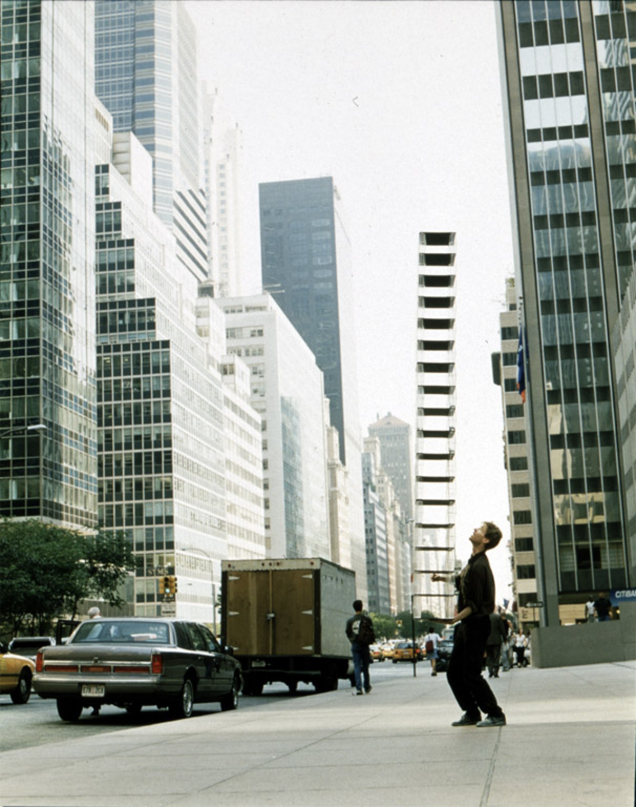 Den Hartog Jager wijst me in de catalogus onder andere op de vergeefse actie van Job Koelewijn. Het werk van Koelewijn is gemaakt in 1998 – waar zijn focus lag op de struggle die ontstond met zijn reis naar ‘het beloofde land voor de kunstenaars’. De sterveling in verhouding tot de dynamische stad.