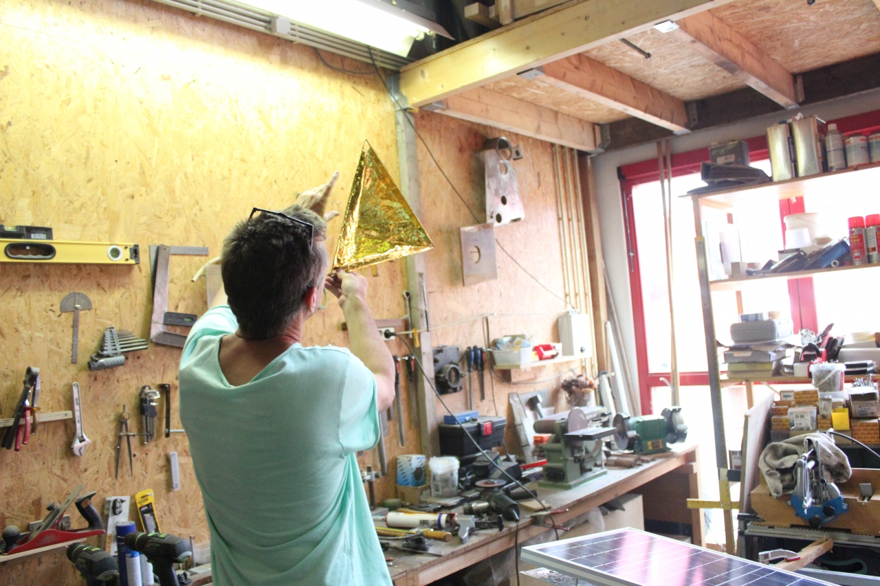 ‘Mannen die aan bomen rukken, terwijl hun vrouwen vol schaamte toekijken.’ ‘Het onvoorspelbare karakter van de installatie wekt niet altijd verwondering, maar soms ook frustratie op. ‘Het is een genot om mijn installaties zo door het publiek te laten beschouwen’, vertelt van der Meijs lachend. De openbare ruimte kent geen museale regels. De kunstenaar ziet zijn installatie, bestaande uit orgelpijpen, zonnepanelen, gouden vliegertjes en mechanica, eerder als een machine dan een sculptuur. ‘Ik snap wel dat mensen er aan zitten, dat zou ik zelf ook doen.’ De installatie is echter niet voor menselijke interactie gebouwd. Enkel de natuur kan haar bespelen, en daar is geduld voor nodig.