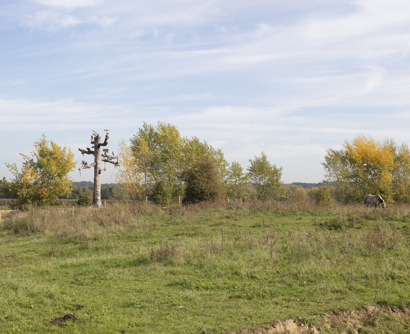 Op een grijze, gure ochtend eind november stap ik op de fiets. Ik heb afgesproken met Wim Peumans, schrijver en antropoloog, om het kunstwerk Tree of Life van Mark Dion te bekijken in Herbricht, een gehucht dat pal aan de Belgische zijde van de Maas ligt. Vanaf Maastricht is het een half uurtje fietsen, langs de rivier die hier de grens tussen Nederland en België markeert.
