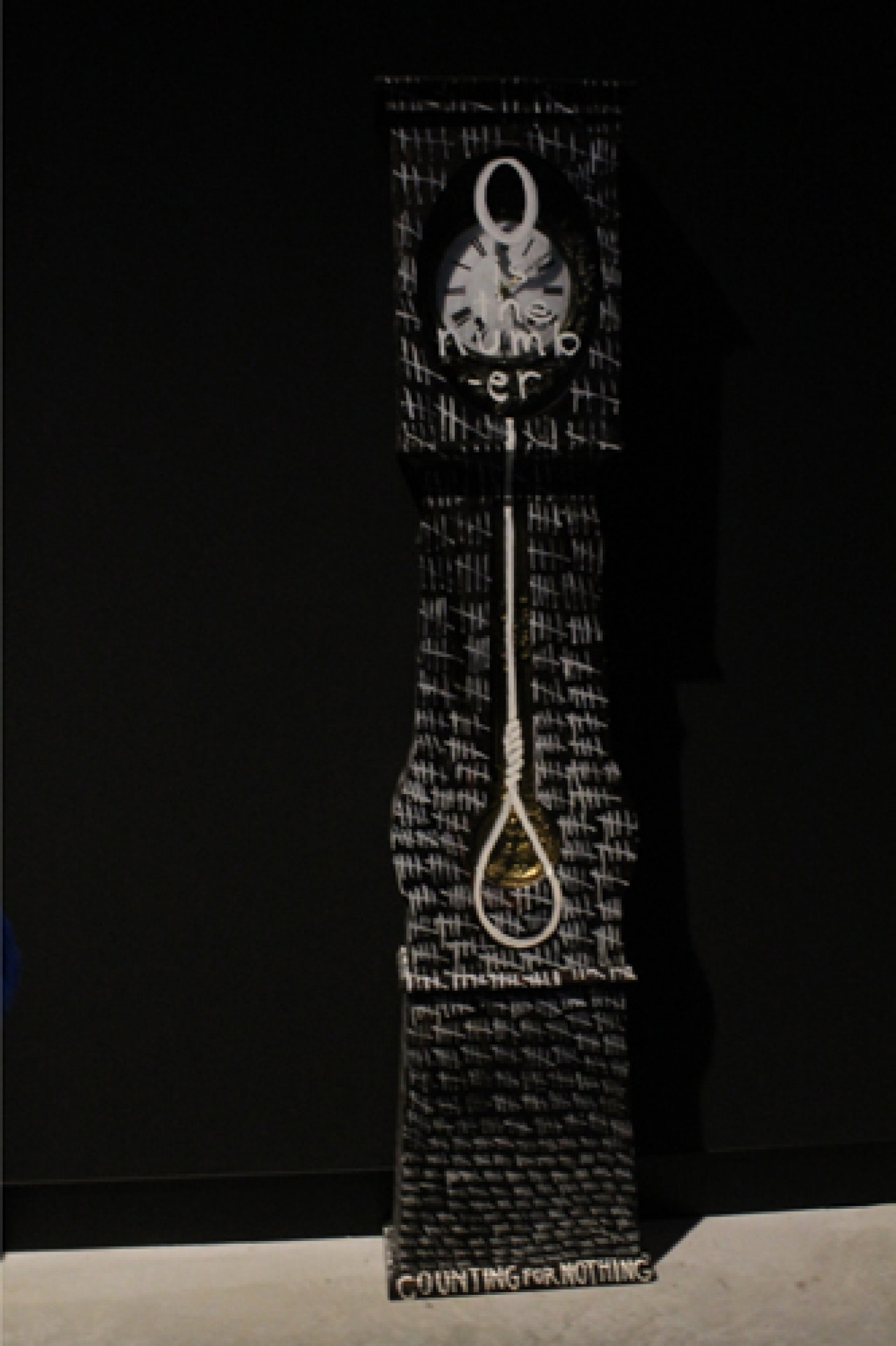 De opstelling van de Australische tentoonstelling Wrong Way Time van Fiona Hall lijkt de inrichting van een natuurhistorisch museum of Wunderkammer. De donkere ruimte, het selectieve licht en de vitrines waarin vele werken zijn tentoongesteld zorgen ervoor dat je een wereld uit een andere tijd binnen stapt. Dit is het enige paviljoen dat geen lange inleiding op de muur heeft geschreven. Niet lezen, maar kijken en ervaren lijkt Hall de bezoeker te willen zeggen. In de kabinetten zien we bankbiljetten met fijntjes beschilderde bladeren, donkere gehaakte maskers en een collectie sprokkelhout: de relatie met Aboriginal tradities is snel gelegd. Hall bewerkte ook meerdere ouderwetse klokken. De schilderingen gaan over het meeste populaire onderwerp van de middeleeuwen: het wegtikken van de tijd. Met een geschilderde strop hangt ze de tijd op, of de klok is afgebeeld als een skelettenhoofd. Het zijn hedendaagse memento mori. De bezoekers willen antwoorden op hun vraagtekens bij de werken. Ze beroepen zich op de suppoosten om hun uitleg te krijgen, veelal is de reactie: u mag het zelf interpreteren. Een vermakelijk gevolg: bezoekers gaan met elkaar in gesprek in gebrekkig Engels over de kunst in de Wunderkammer.