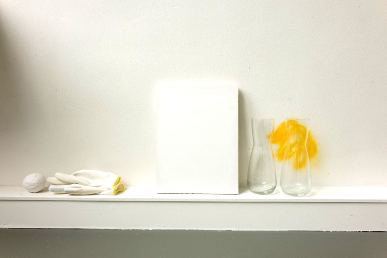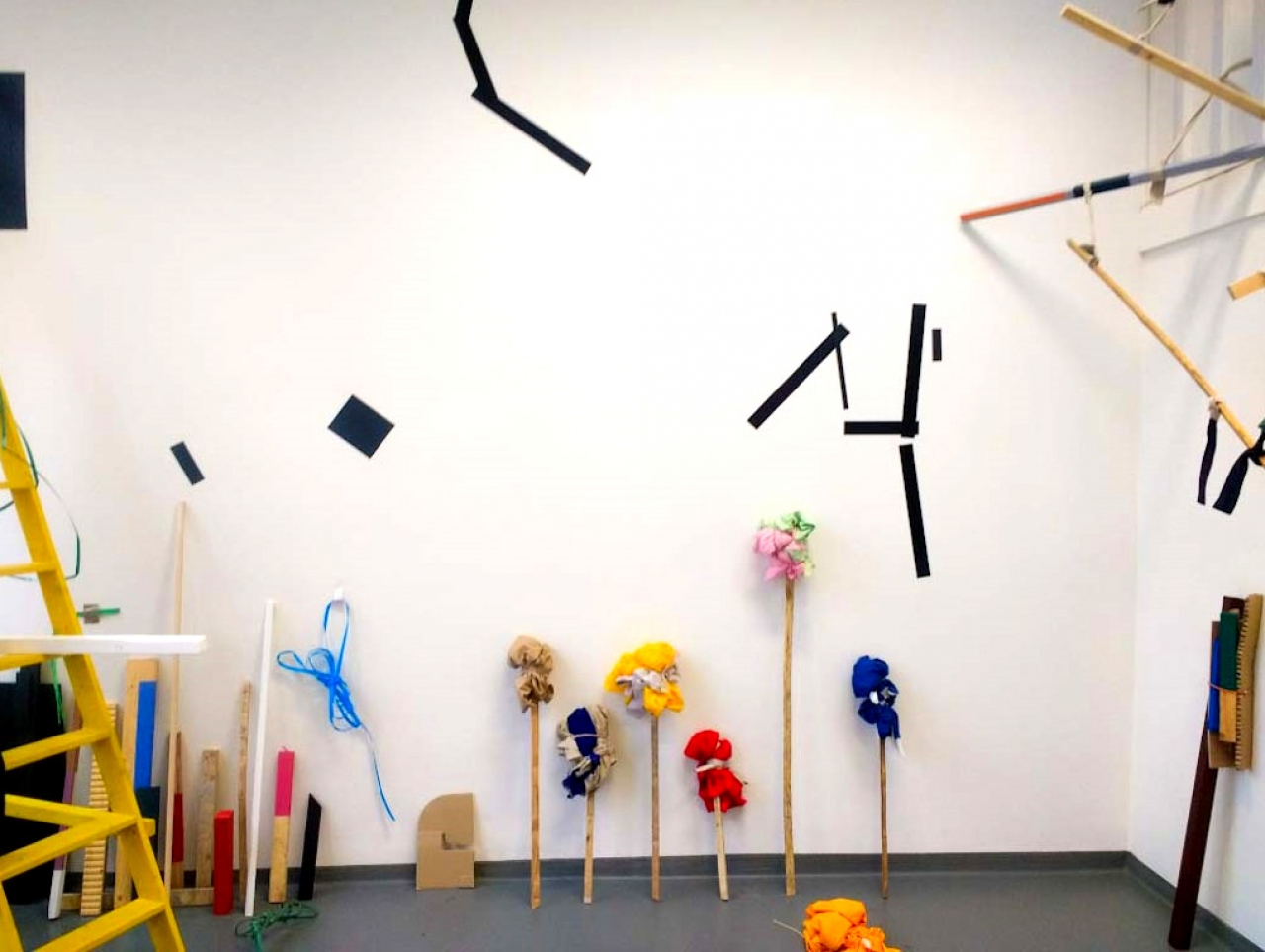 Ronddwalend door de verschillende presentaties in de studio’s van de Jan van Eyck Academie valt me één ding op: het enthousiasme waarmee onderzoek wordt gedaan naar de relatie van materialen, objecten en kleuren, soms ook geuren en geluiden, tot ruimte en lichamelijkheid.