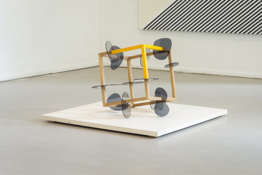 In het atelier van Eddy Stikkelorum in een voormalige huishoudschool aan de Haagse Cartesiusstraat is multiplex en perspex in allerlei kleuren het materiaal dat momenteel zijn ruimtelijk voorstellingsvermogen vertegenwoordigt, waar hij eerder vooral met polyester en epoxy werkte. De sculpturen die hij ermee tot stand brengt hebben als eigenschap dat niet de substantie ervan de betekenis bepaalt, maar de binnenruimte die ermee zichtbaar wordt gemaakt. De paradoxale eigenschap van zijn werk bestaat eruit dat hij met materie materieloosheid toont. Het wezenlijke element van het beeld bestaat uit de afwezigheid van vorm, uit vormeloosheid die een fundamentele gedaante aanneemt die je kunt waarnemen als een beweging in de ruimte. Wat je erin terugziet is een diepgeworteld verlangen naar persoonlijke vrijheid als dagelijkse werkelijkheid.