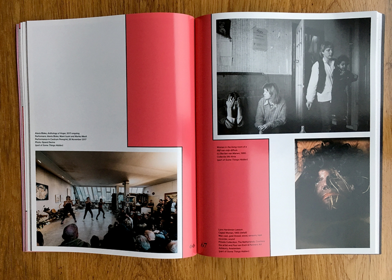 Naast dat al deze essays een plek hebben in het boekwerk, wordt er volgende week in Framer Framed een afsluitende tentoonstelling geopend, Some Things Hidden. Afsluitend, omdat deze expositie het laatste programmaonderdeel is van het ‘Female perspective’ jaar in Castrum Peregrini. De tentoonstelling is gecureerd door Nina Folkersma en Charlott Markus. Achterin de publicatie bevinden zich beelden van alle werken en kunstenaars uit deze tentoonstelling. Schrijver Lietje Bauwens interviewde alle twaalf kunstenaars en schreef bij ieder werk een uitgebreide tekst die ook te lezen zijn in het boek. De vele verschillende artikelen, essays en interviews zijn vormgegeven door de studio van Roosje Klap en zij heeft er samen met Pauline Le Pape en Jolien Wallenus een stralend en pakkend geheel van gemaakt.