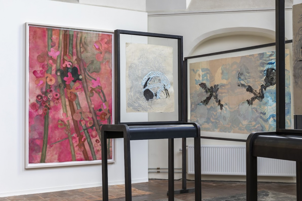 There, I encounter the work of Werker Collective, Gleb Maiboroda & Studio Bonbon. On the textile pieces there are work slogans – for, against, in the distance, up close. The work description hints at the content of the work: “the project’s core question: How can Werker Collective’s design and artistic practice be re-articulated to enable and support an ecosystem of care in balance with nature and non-human forms of life?”