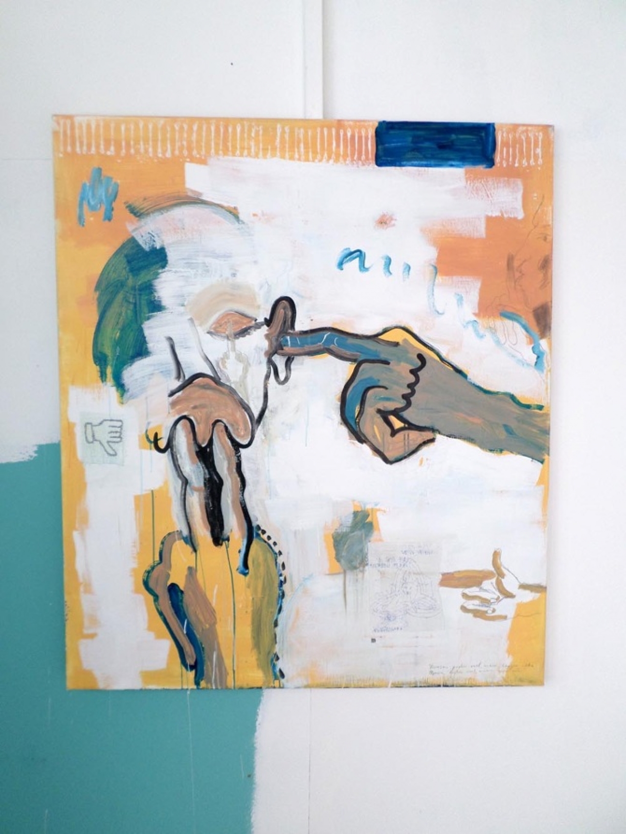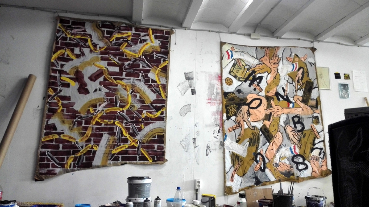 Anan Striker is een beelddichter. In zijn vrolijke, luchtige schilderijen, tekeningen, foto’s en installaties zit steevast een woordgrap of geestig beeldrijm verstopt. Vaak iets met rapteksten. In enkele rake lijnen of ingrepen laat de kunstenaar zien hoe zijn blik op de alledaagse wereld om ons heen eruit ziet. Striker slaagt er in om je telkens toch nòg een keer te laten kijken. Het kan toch niet waar zijn, dat die schoen gewoon blijft staan terwijl ie uit het gras steekt? En is dat niet steeds de naam van de kunstenaar, die opduikt in het ritme van bruggen, trappen, op een menukaart en zelfs op een walkman? Twee of drie keer kijken = meer zien = meer verwondering. (Tekst: Inge Pollet)