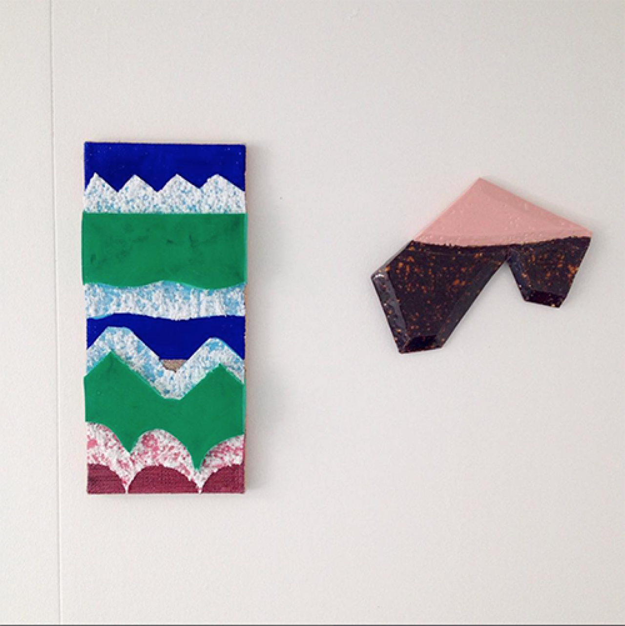 In het werk van Ralph de Jongh (1978) komen schilderkunst en ruimtelijk werk bij elkaar, bijvoorbeeld in keramische schilderijtjes of in ruimtelijke objecten. Gips en keramiek brengt hij vaak samen met lagen verf, soms als een verleidelijke saus over het werk aangebracht. In ander werk manipuleert hij de oppervlaktes van zijn werk door de wijze waarop hij het materiaal behandelt of door reliëfs toe te voegen. Dat daarbij onverwachte reacties in het materiaal ontstaan, zijn toevalligheden die hij in zijn werk opneemt. Die kleine foutjes refereren voor De Jongh aan de foutjes die je tegenkomt in het dagelijks leven, zoals verkeerd gelegde tegels of architectonische missers, maar ook de verslavingen waarmee mensen even aan de realiteit kunnen ontsnappen. “Zo zie ik mijn werk, een schakeling of een vonk die mij laat ontsnappen maar mij ook misschien wel de wereld beter laat begrijpen. “
