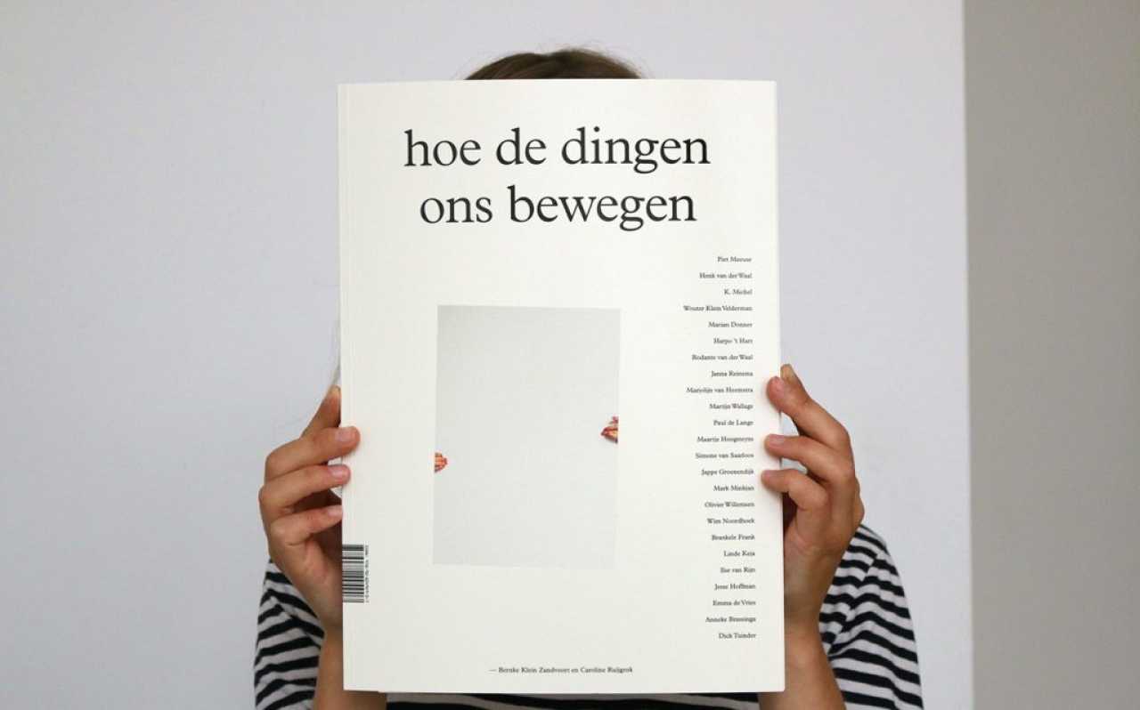 ‘Op nieuwe schoenen loop je anders door de wereld. Emile Roemer dronk Fanta met een rietje en maakte zich zo volgens veel Twitteraars ‘premier-onwaardig’. Mark Rutte gooide vlak voor de foto het rietje weg en zette het flesje aan de mond. Het uitdrukken van een sigaret markeert het einde van het gesprek. Het een kwartslag draaien van de tafel verandert de looplijnen door onze kamer. Door het scherm van onze smartphone kijken we naar buiten.’ Deze zinnen openen het boek Hoe de dingen ons bewegen van Bernke Klein Zandvoort en Caroline Ruijgrok. De mensen en de dingen zijn in onze wereld aan elkaar verbonden. Vaak wordt dit gegeven bekeken vanuit één enkel perspectief; wat doet het ding voor ons? We hebben het idee dat de dingen ons nodig hebben om functie te genereren. Met de 24 essays van schrijvers, kunstenaars en wetenschappers die Klein Zandvoort en Ruijgrok hebben verzamelt wordt er stil gestaan bij hoe de dingen óns bewegen. Het resultaat is een boek dat leest als een muziekstuk en waar voor de verandering niet ‘de mens’, maar ‘het ding’ eens in het middelpunt van ons bestaan wordt gezet.