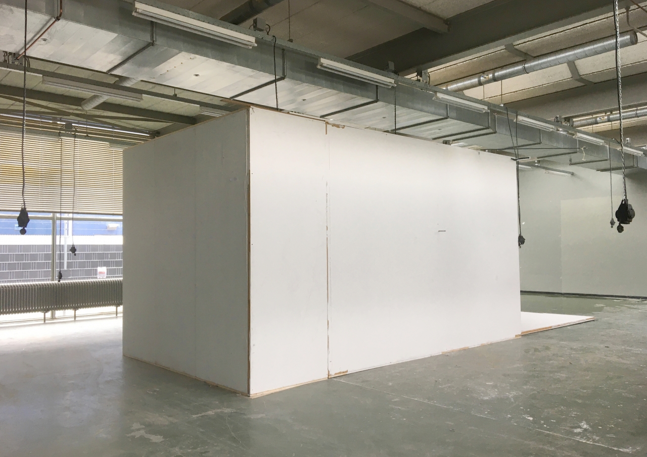 Anyway, before I knew about Parsons I also presented walls at the academy, although I never really painted one. I sometimes built them, prepared them to be painted, filled up holes that were left from previous presentations, cleaned them; made all the groundwork for painting, without the act of painting itself. My subject was often the given space, including its interior and facilities, which I choose to interfere with, by (re)placement or (re)presentation in order to frame and question it. Once I even sent a proposal to the Stedelijk Museum to paint one of their walls with their tools and materials, because when I was there before I saw it was dirty. (The proposal got denied, as the wall was already meant to be re-painted.) Later, during my final years at the academy, I started to examine and question the presence of a studio (or gallery). I was questioning my role within it, and their role in my artistic practice.