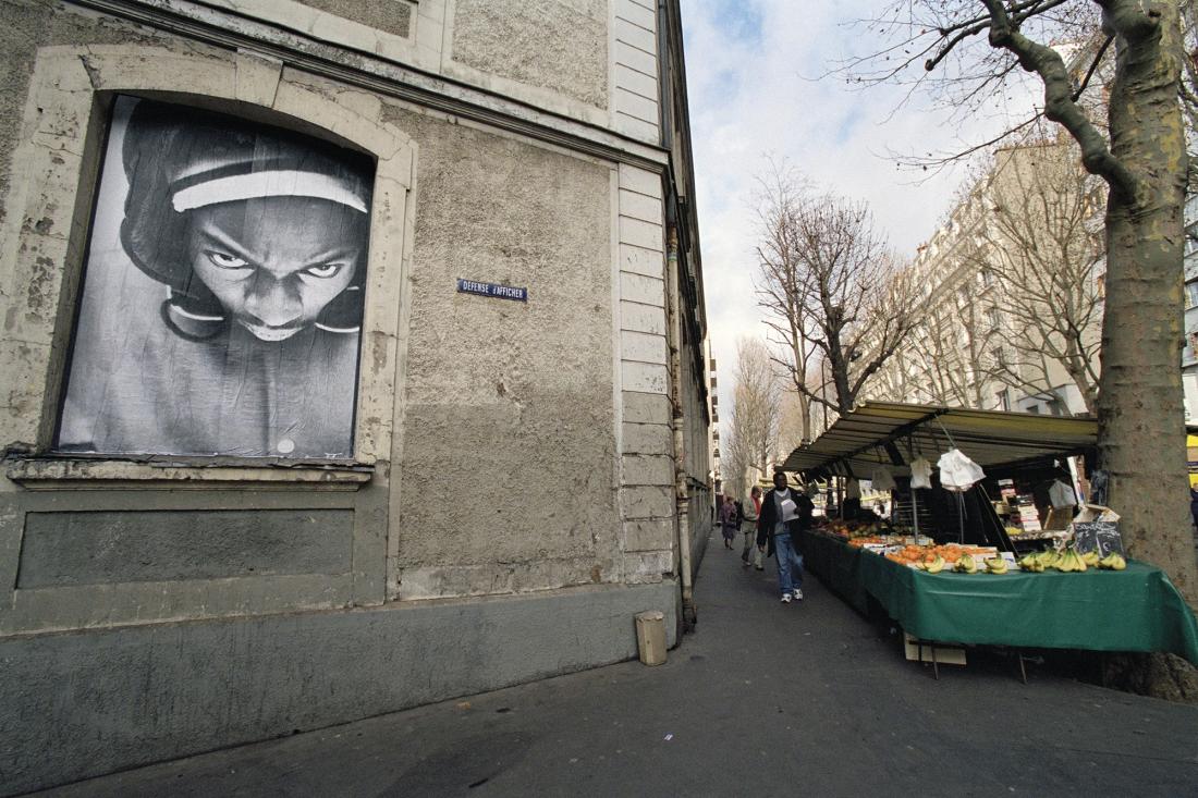Vooral zijn serie portretten van inwoners van de banlieues in Parijs greep me aan. Hij mengt zich in de groepen uit die wijken en mag uiteindelijk zó dichtbij komen dat hij ook letterlijk met zijn camera op minimale afstand komt. Dat levert intieme en indringende portretten op die hij vervolgens levensgroot op muren in de openbare ruimte van andere, beterbedeelde wijken in Parijs plaatst. Zo brengt hij de mensen uit de banlieues naar de binnenstad. Want, zij zijn toch ook onderdeel?
