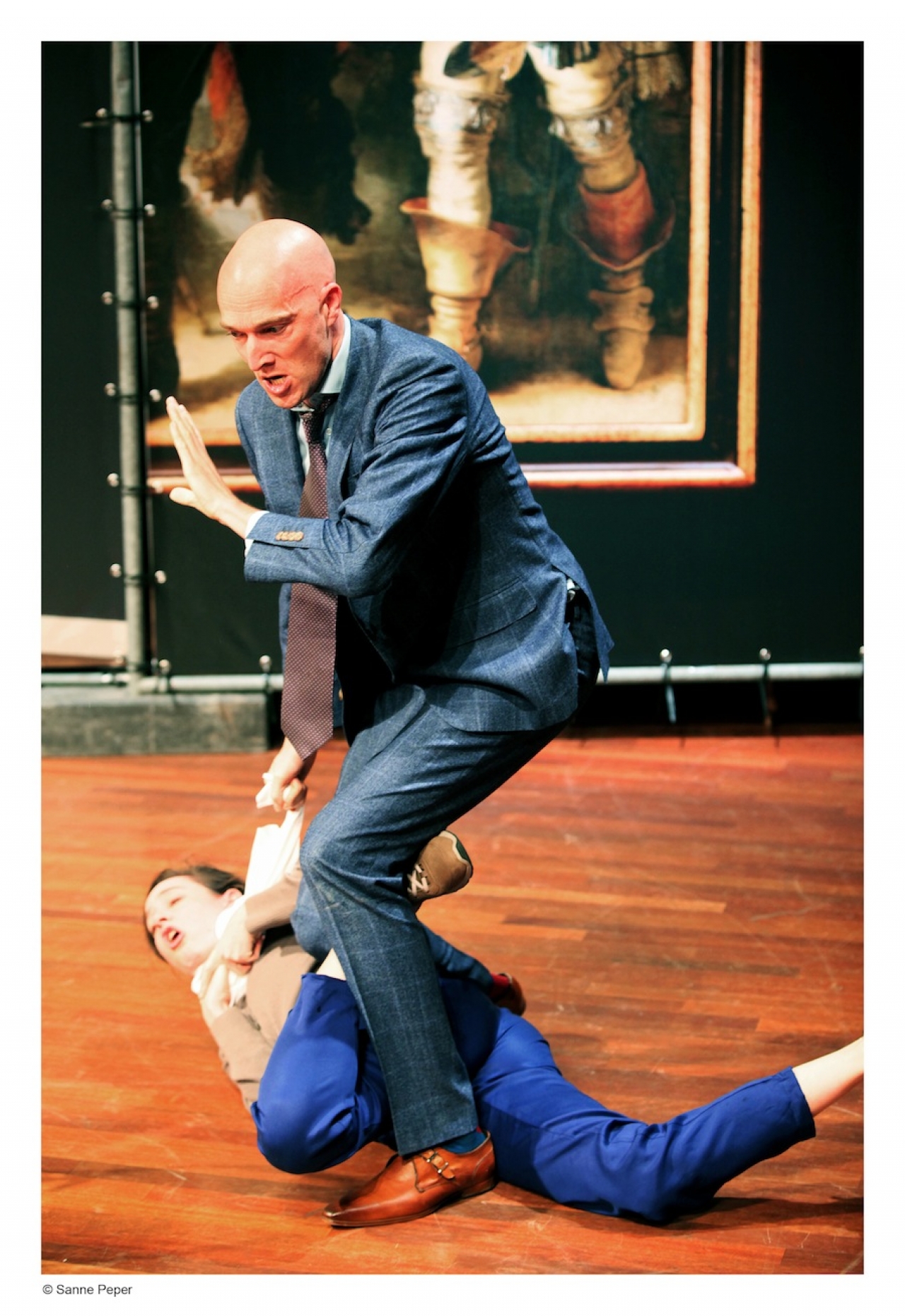 Wat een briljante voorstelling voor al het kunstminnend publiek. De bestuurders in ons land worden geridiculiseerd en Mark Rutte (schitterend gespeeld door Guy Clemens) lijkt achter de schermen een geheime liefde te koesteren voor alle vormen van kunst. Als een kleine jongen vol dromen, een musje dat uitvliegt, overtroeft hij met zijn vurige speech op zijn bureau de speech van Rasmy Nasr. Een liefdesverklaring afkomsitg van Rutte jegens het minuscule Puttertje in het Mauritshuis, naast zijn torentje van waaruit hij het land bestuurd, betekent het hoopvolle, doch banale slot van Kunsthart.