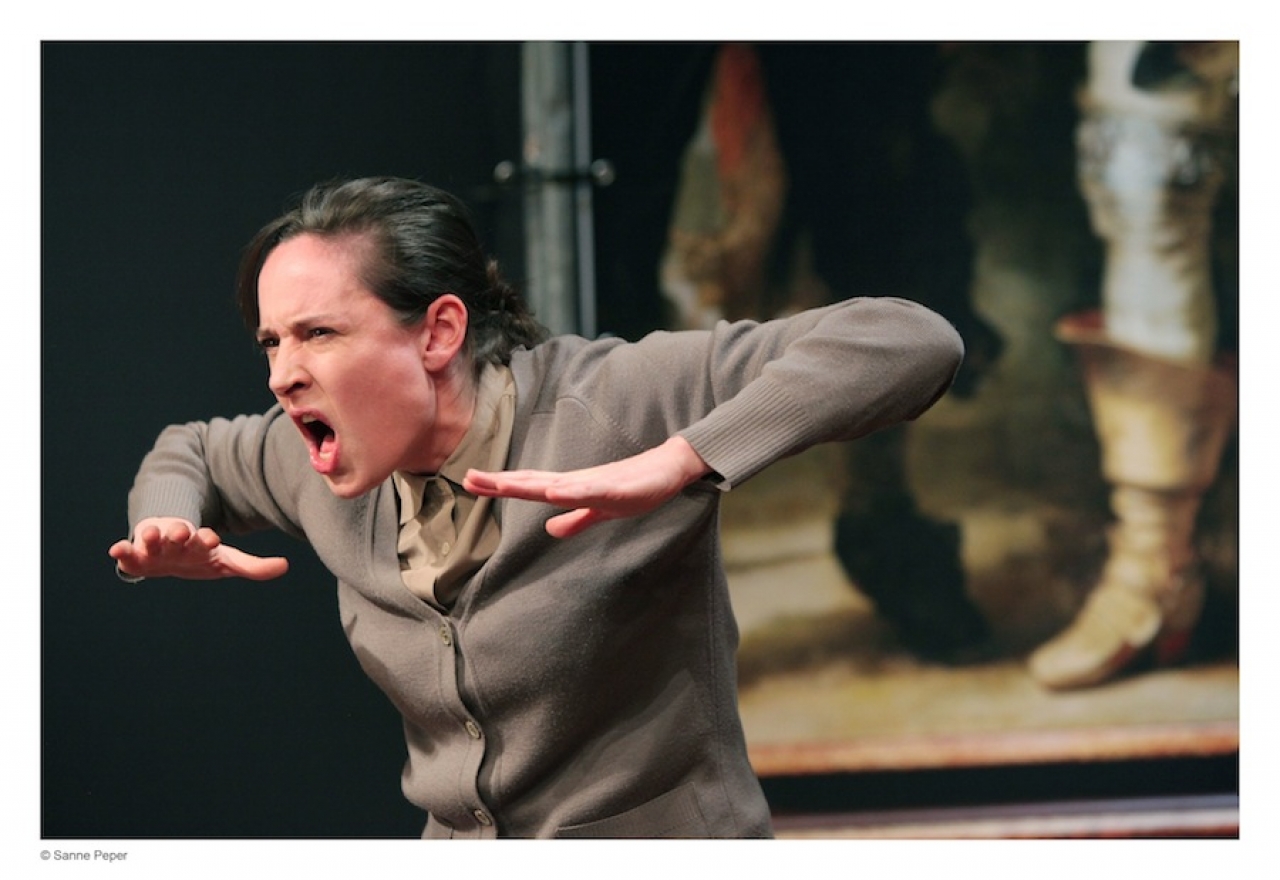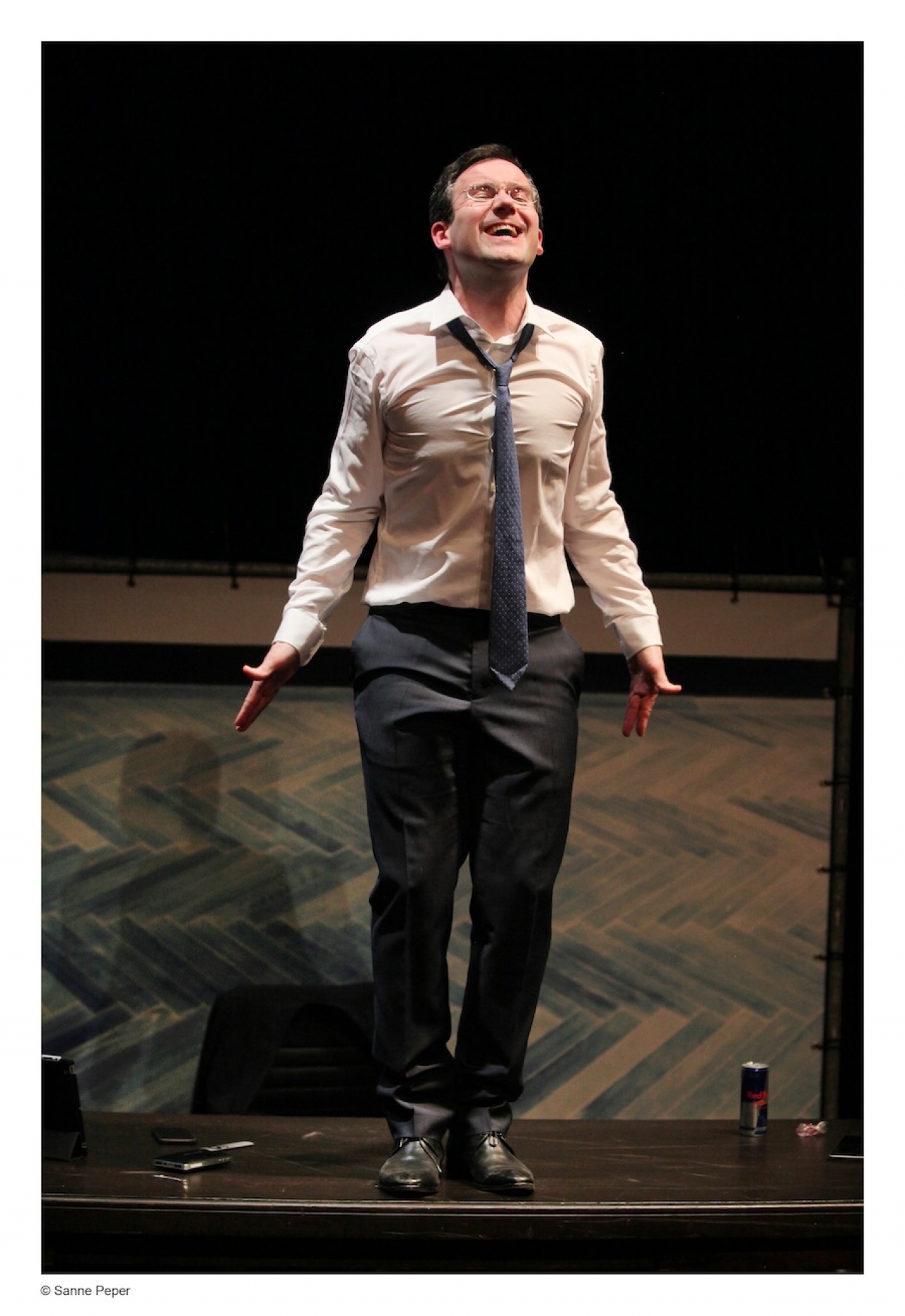 In het Lieve Vrouwen Theater in Amersfoort kijk ik naar een acteur die de verontwaardiging van Wim Pijbes tot in zijn tenen uitspeelt. Zijn vuisten gebald, zijn onderlip trilt, zijn aderen kloppen tegen zijn slapen. Mugmetdegoudentand speelt Kunsthart, een drieluik dat Nathan Vecht zeer treffend schreef gebaseerd op waargebeurde incidenten in de kunstwereld: Wim Pijbes, Mark Rutte, Mariss Jansons en de vrouw van Armin van Buuren komen voorbij, gespeeld door Sieger Sloot, Hannah van Lunteren en Guy Clemens