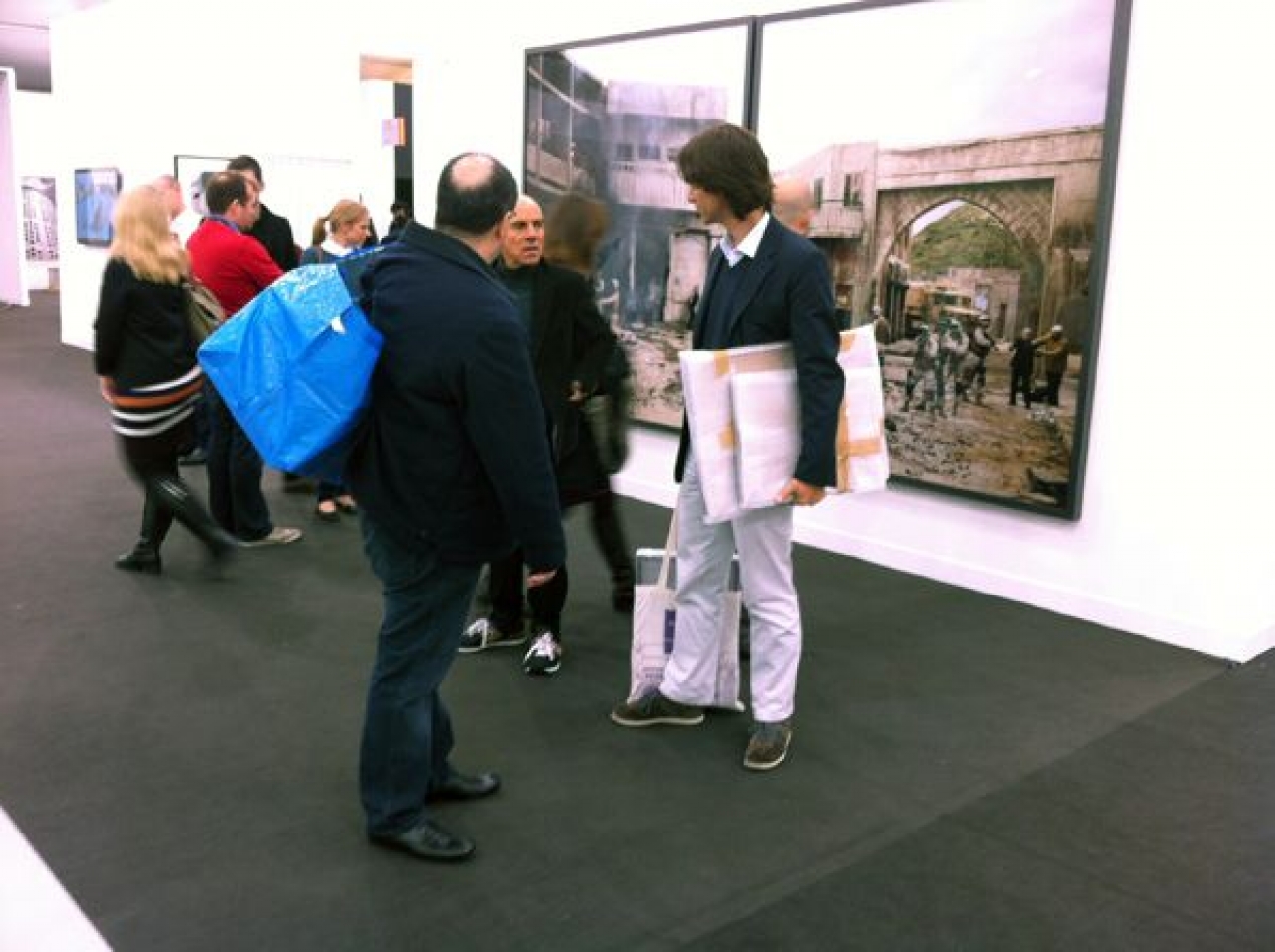 Vijf minuten na het Russisch- Italiaanse tafereel zie ik drie Russische mannen die haastig afscheid van elkaar nemen. De ene man heeft een IKEA tas over zijn schouder met kleine schilderijen. De andere houdt argeloos wat doeken en foto’s verpakt in doorkijkplastic in zijn hand. Deze casual uitziende jonge mannen hebben kunst gekocht met hetzelfde gemak als een broek of een jas. En net als veel van hun jassen en broeken zullen er ook veel kunstwerken veilig opgeborgen worden in een donkere opbergkast van hun depots. Misschien vind ik dat nog wel het meest zonde.
