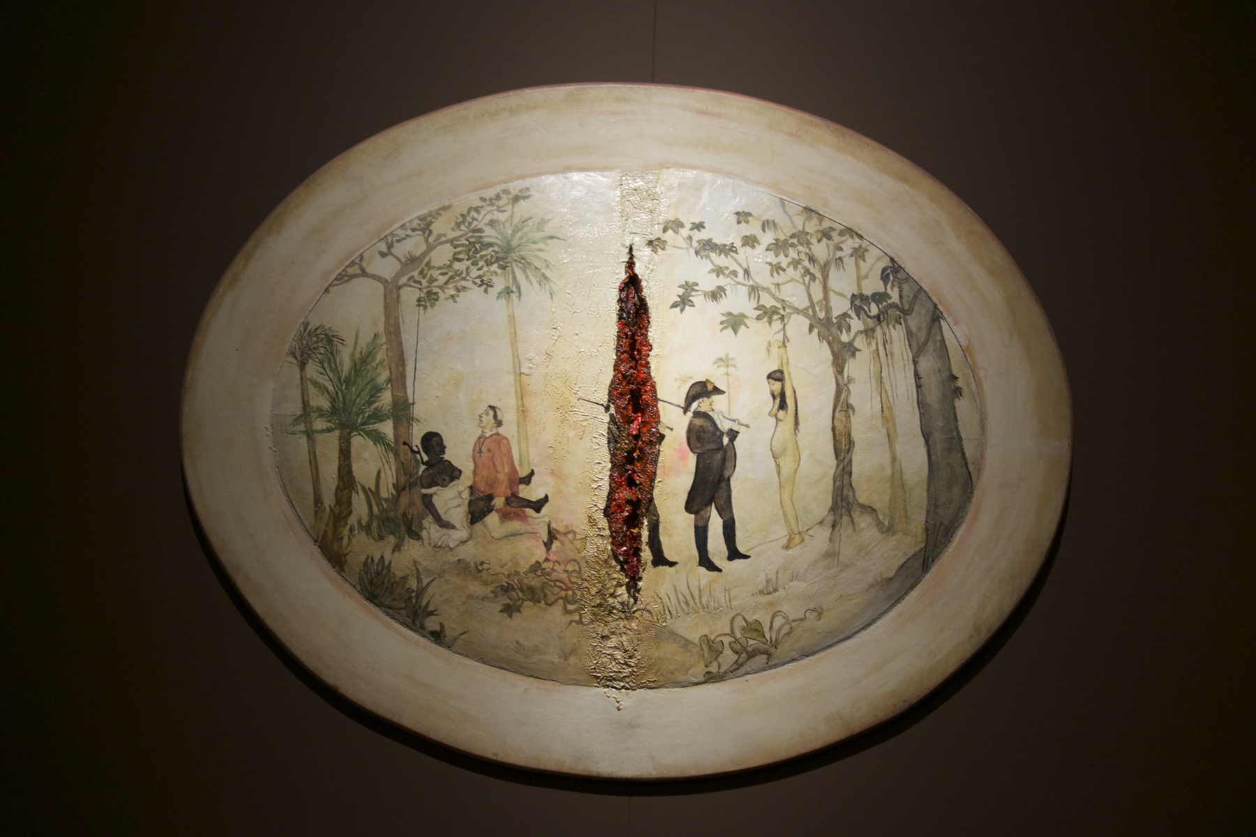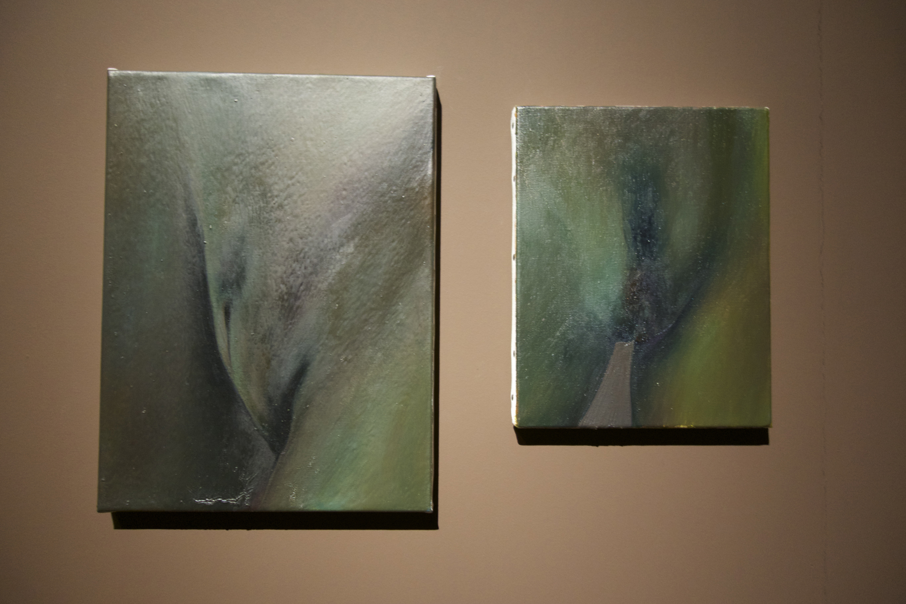 Ina van Zijl toont prachtige kleine werkjes met vrouwelijke geslachtorganen in fel roze en ongezond goen. ‘Blushing Bride.’ Door de transformatie in verf kijk je zonder probleem naar deze prachtige schilderijtjes. In de context van schaamte valt er niet meer zo snel iets uit de toon, zoals de foto’s van Zoë Leonard op de Documenta 10 dat nog deden. Te midden van de klassieke portretten waarbij, zoals gebruikelijk, mannen vrouwen afbeelden, hingen foto’s van het vrouwelijk geslachtsorgaan waarop alles helder te zien was; en wat een verschillen. Goed kijken, dat is waar het in de beeldende kunst op aankomt, maar hier was het lastig turen om de foto’s te bestuderen, ik voelde me gegeneerd, keek ook steeds om me heen. Het viel niet mee om neutraal te doen, niets aan de hand, ik bekijk gewoon de variaties in kleur en vorm en de lichtval van deze vagina’s.