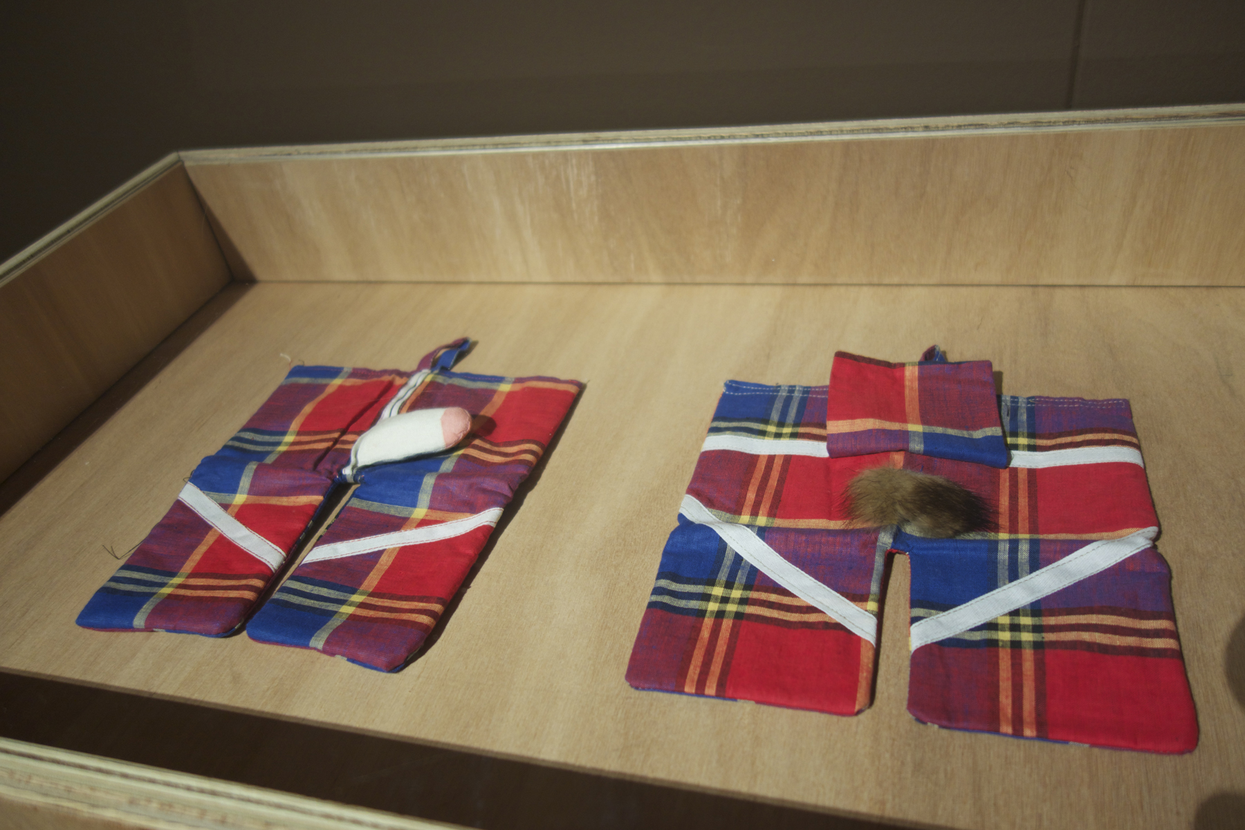 De kracht van de tentoonstelling ligt in de grote hoeveelheid verschillende zaken rondom schaamte die bijeen zijn gebracht. In een glazen kastje ligt een soort Rolodex, de Mutoscoop met 850 kaarten over The original sin afkomstig uit het politiemuseum. Hier had ik wel even doorheen willen gaan om de teksten op de kaarten te zien. Er is een houten poppetje waarbij je de dokter kon aanwijzen waar je pijn had zonder dat je je hoefde uit te kleden: een Chinees diagnosemodel.