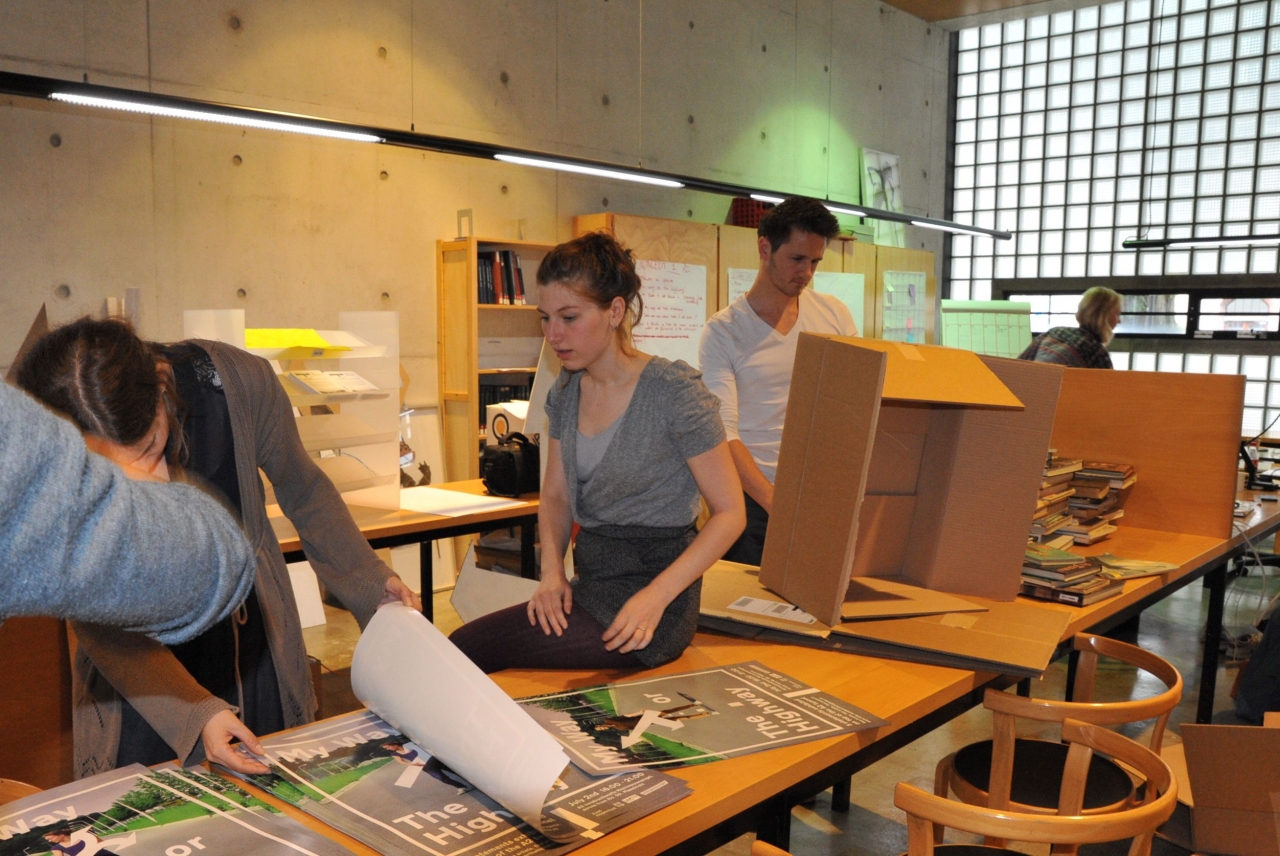 Passend bij de werkzaamheden aan de tunnel ontstond het idee de werken te presenteren in vijf kleine vrachtwagens ‘nog net te besturen met een normaal rijbewijs’. Met de diversiteit aan invalshoeken en werkwijzen was deze eindexamen-expositie een indringende totaal-ervaring.
